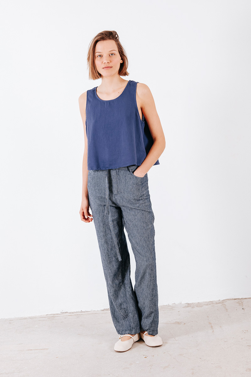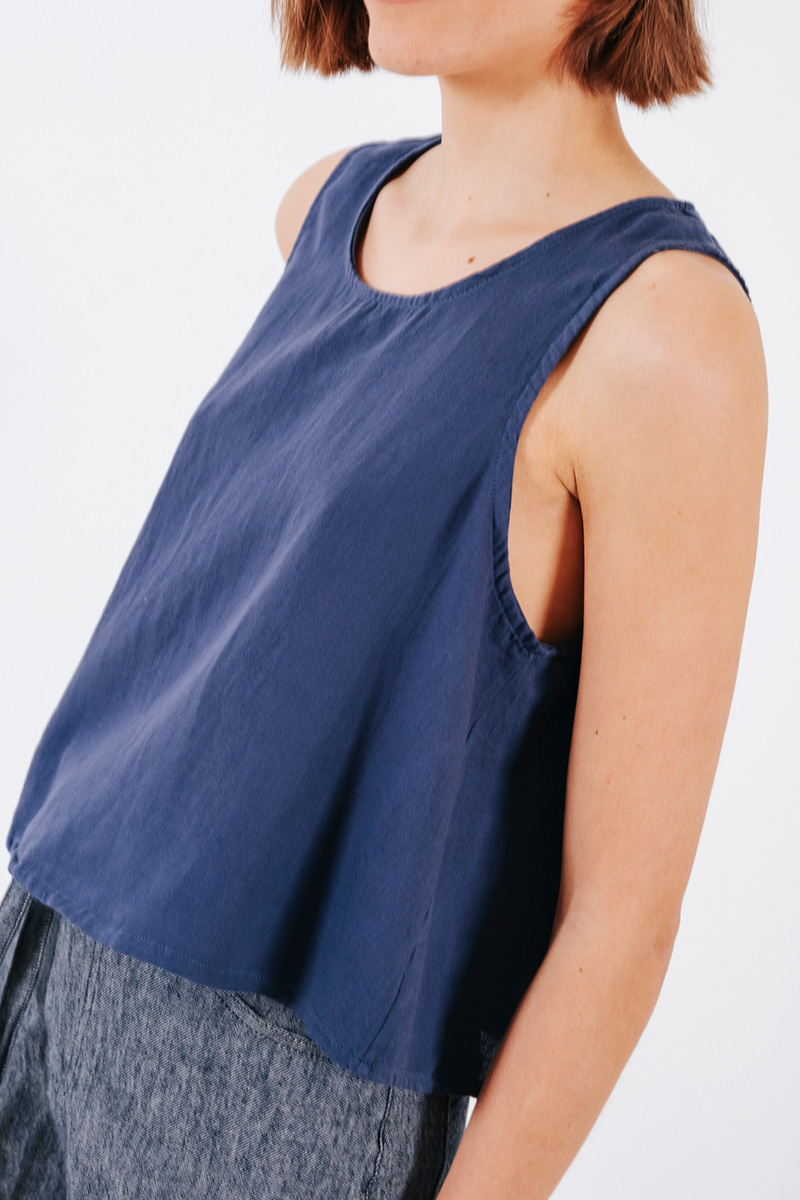 Βαμβακερή αμάνικη μπλούζα με στρογγυλή λαιμόκοψη.