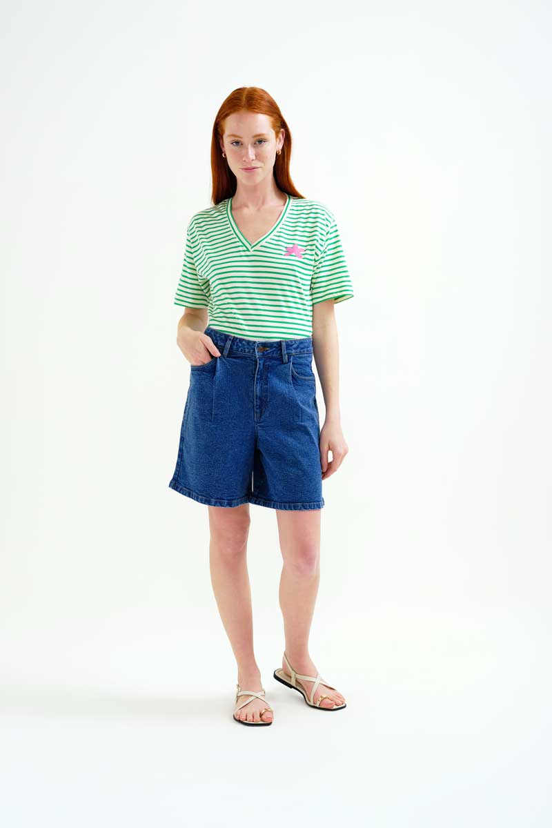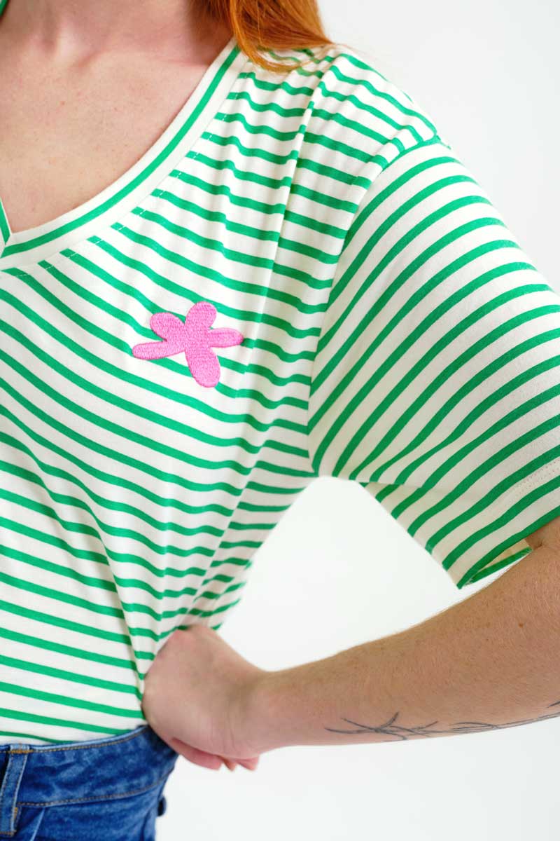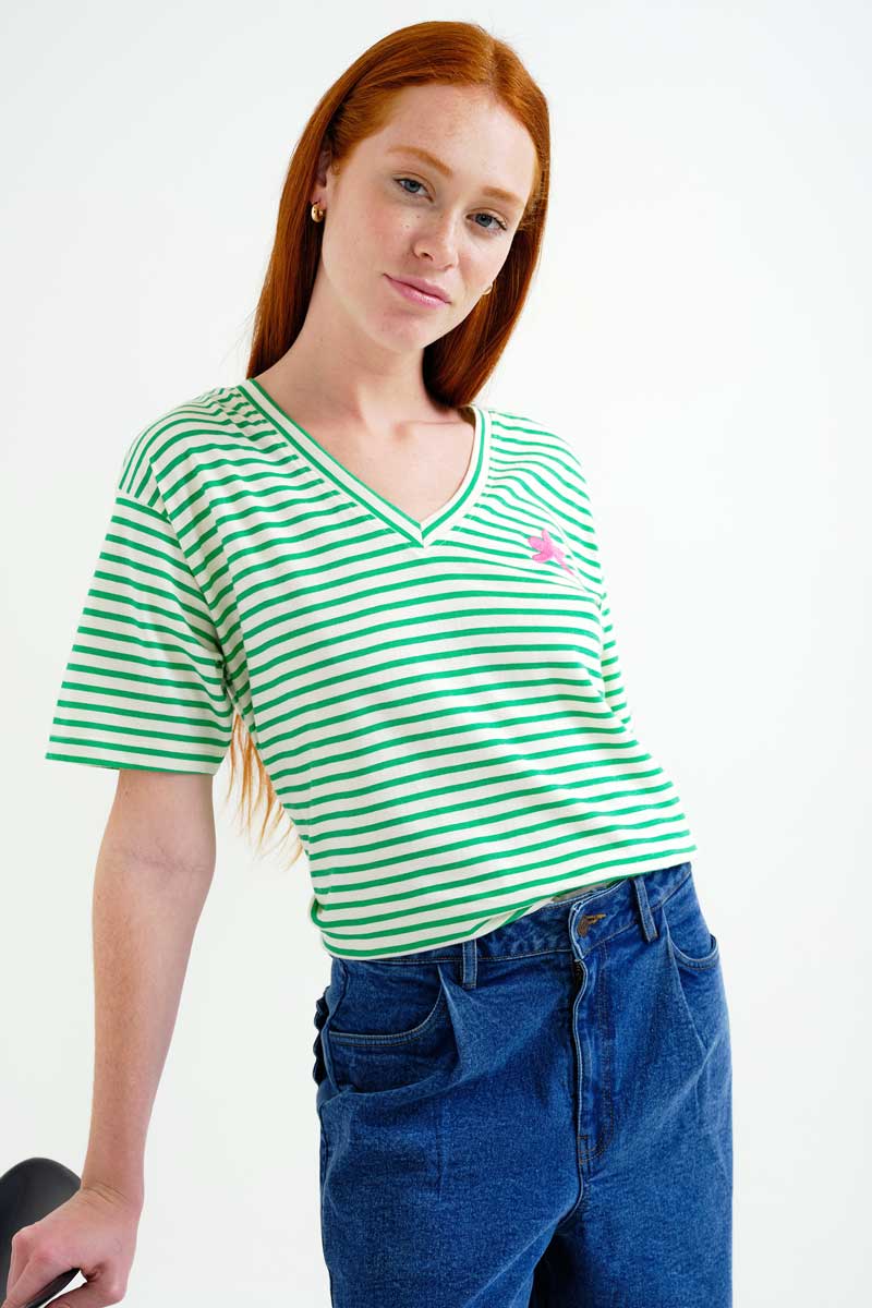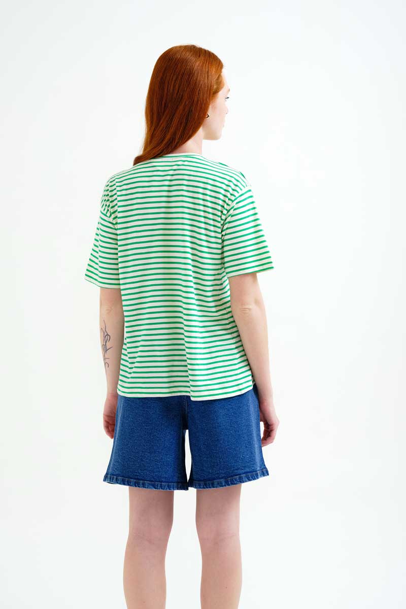 Μπλούζα από 100% βαμβάκι με ρίγες σε λευκό και πράσινο χρώμα.