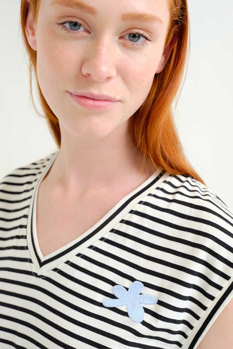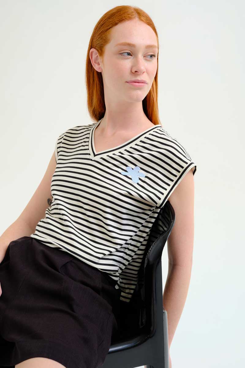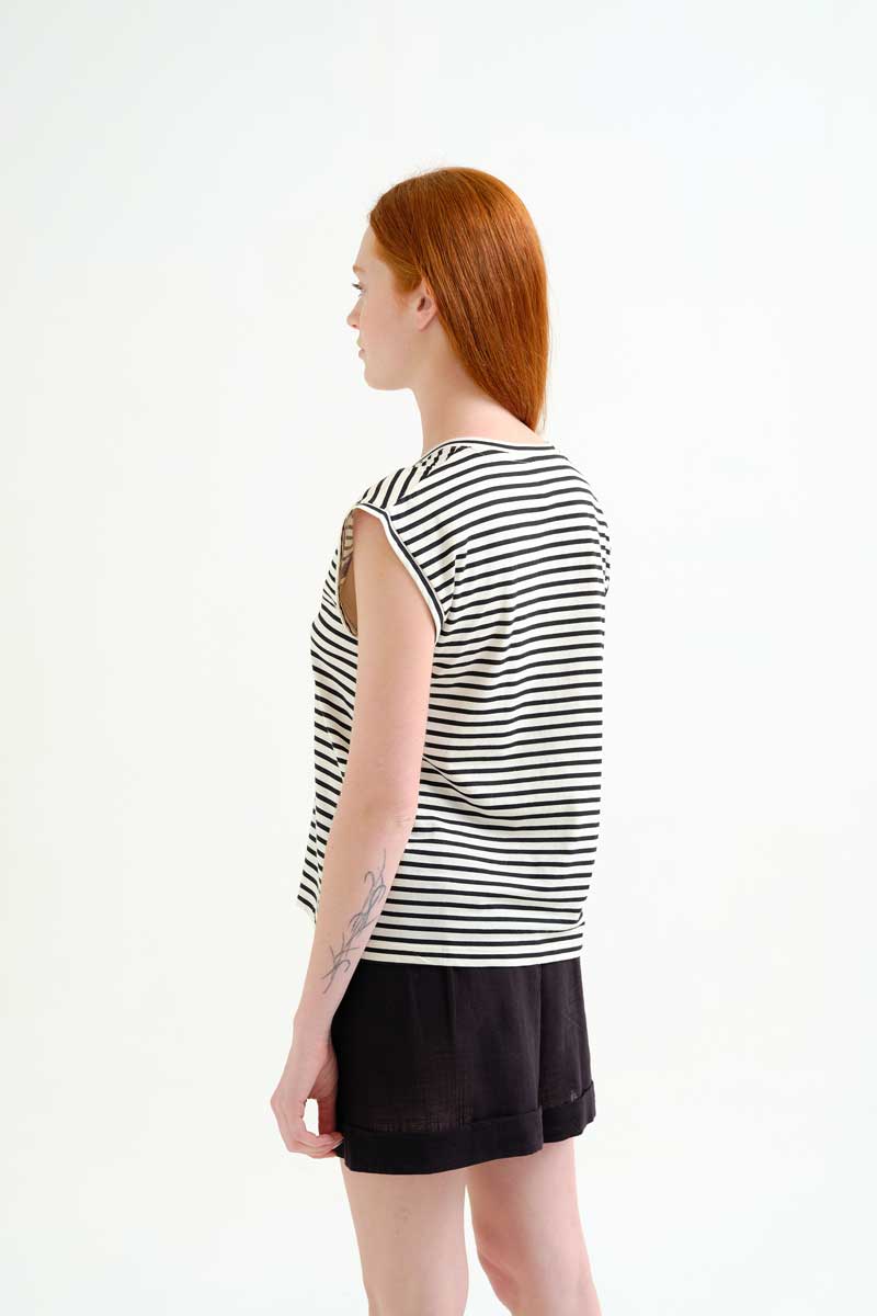 Μπλούζα από 100% βαμβάκι με ρίγες σε λευκό και μαύρο χρώμα.
