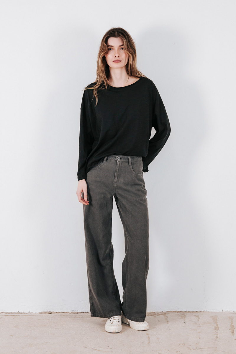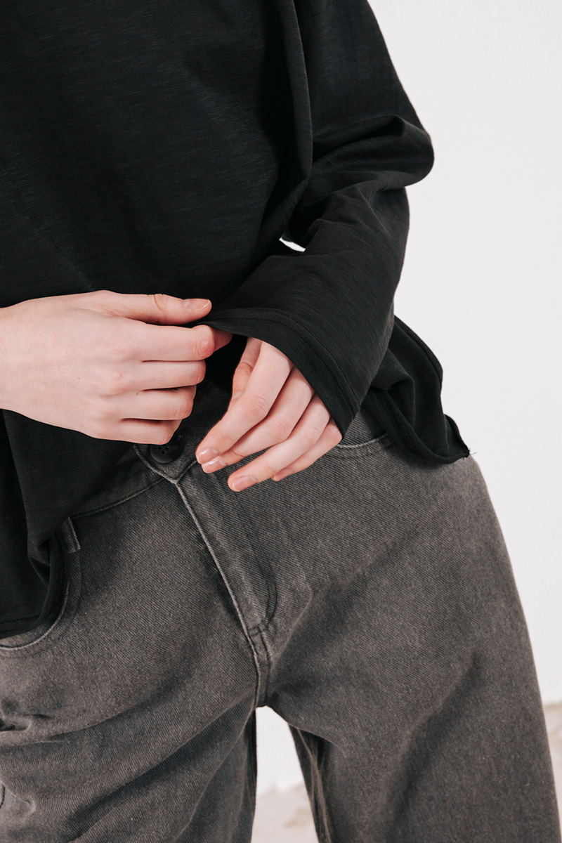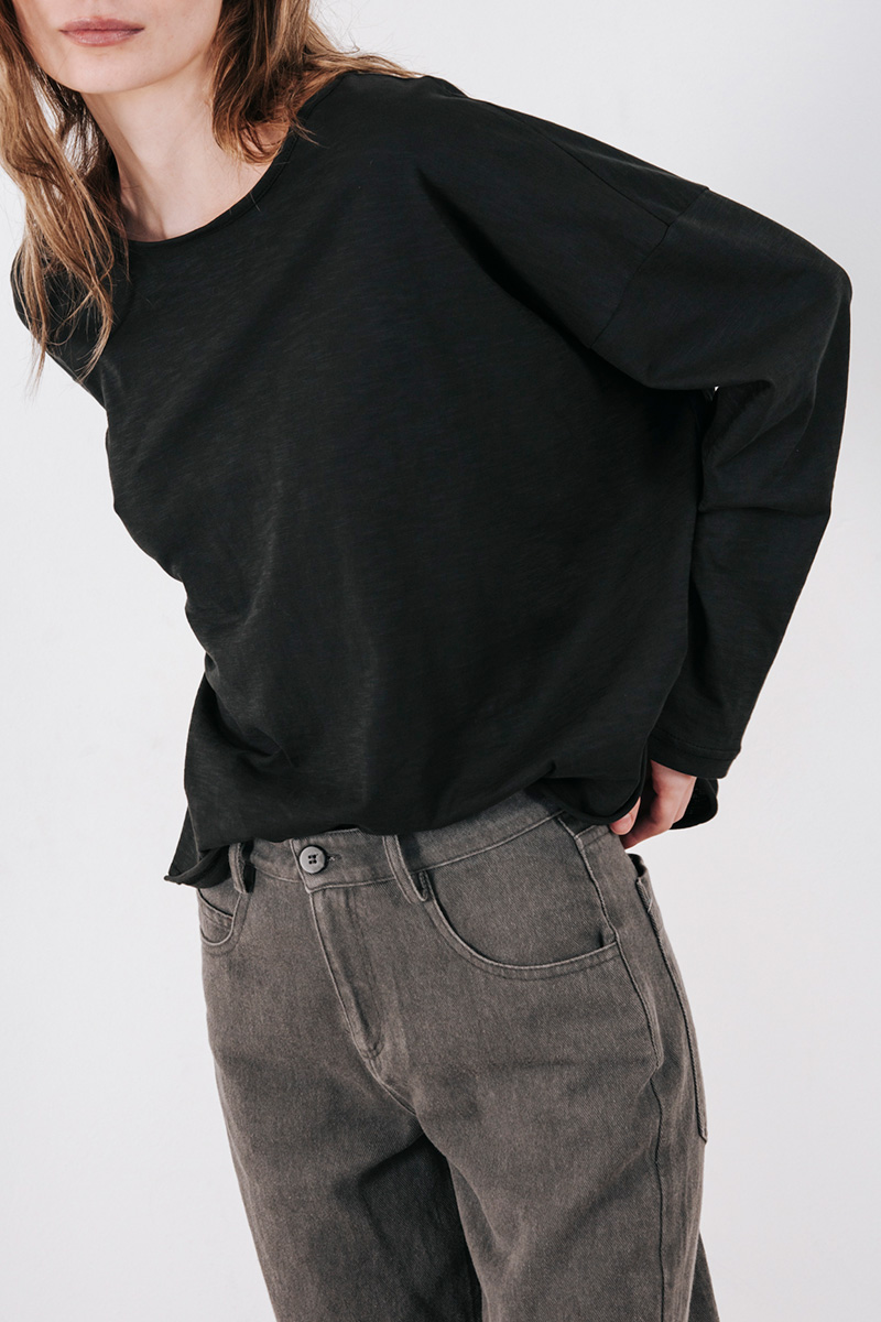 Βαμβακερή μπλούζα μακρυμάνικη με στρογγυλή λαιμόκοψη.