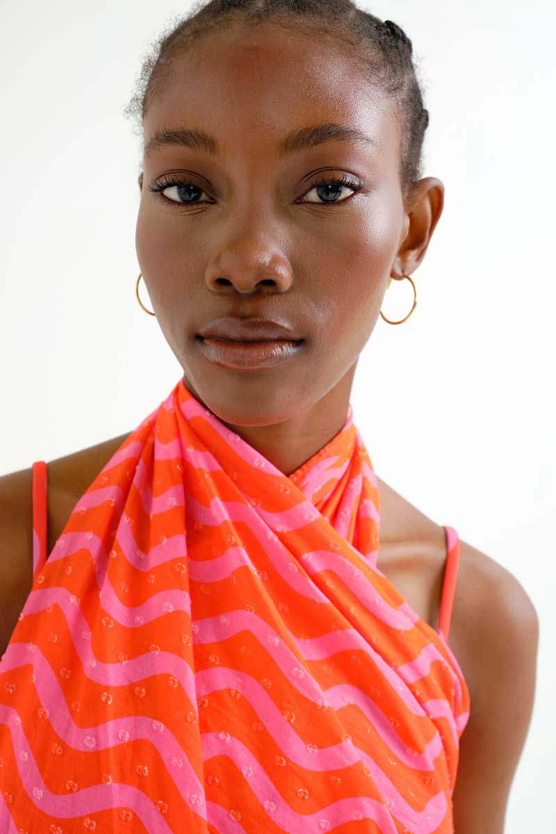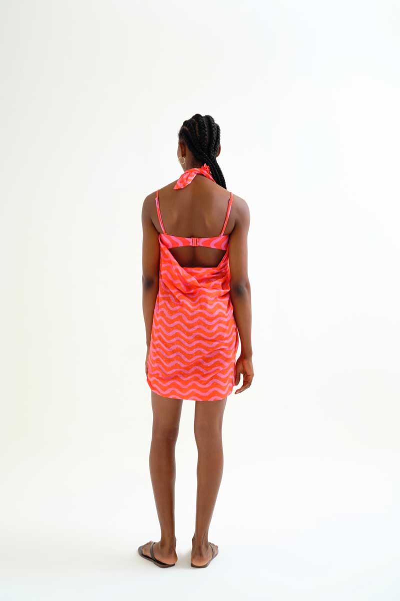 Βαμβακερό δετό παρεό με ροζ κοραλί Wave print.
