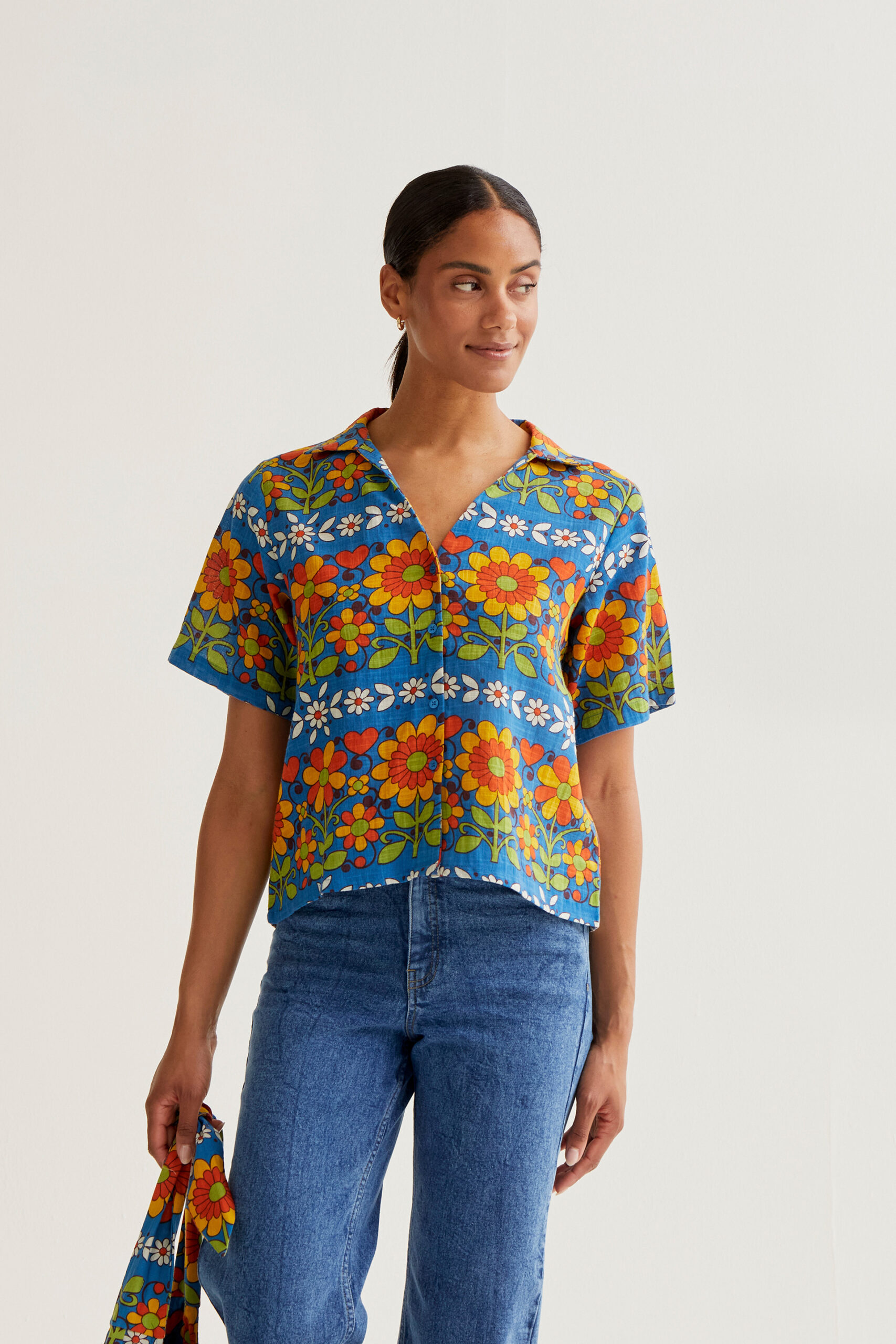 Πουκάμισο από 100% βαμβάκι με τύπωμα πολύχρωμα λουλούδια..
