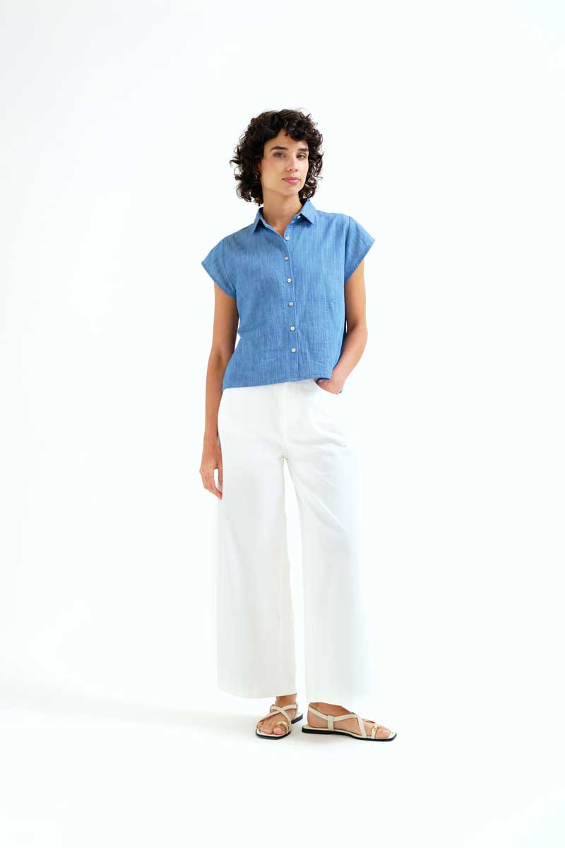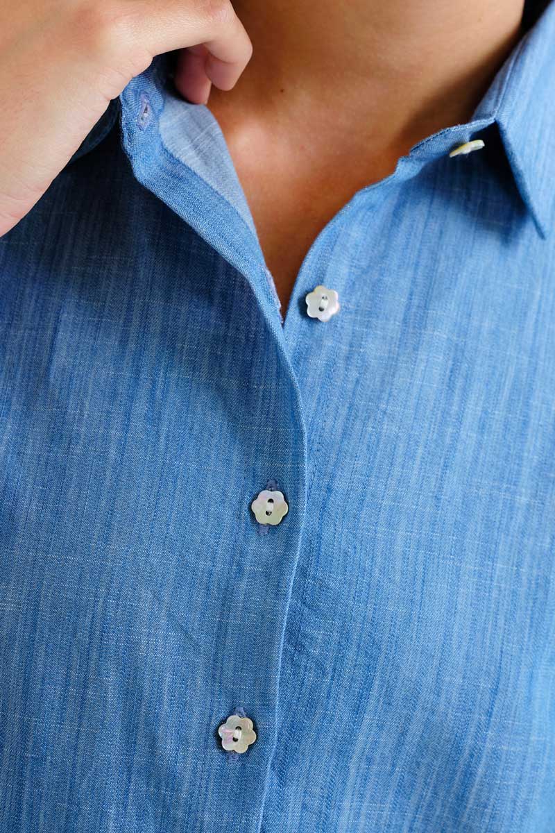 Πουκάμισο από 100% βαμβάκι chambray σε ανοιχτό μπλε χρώμα.