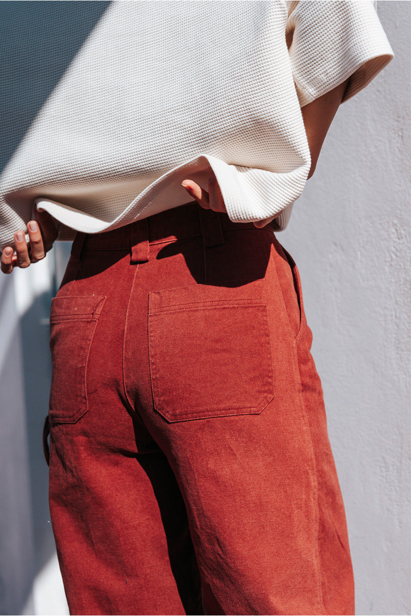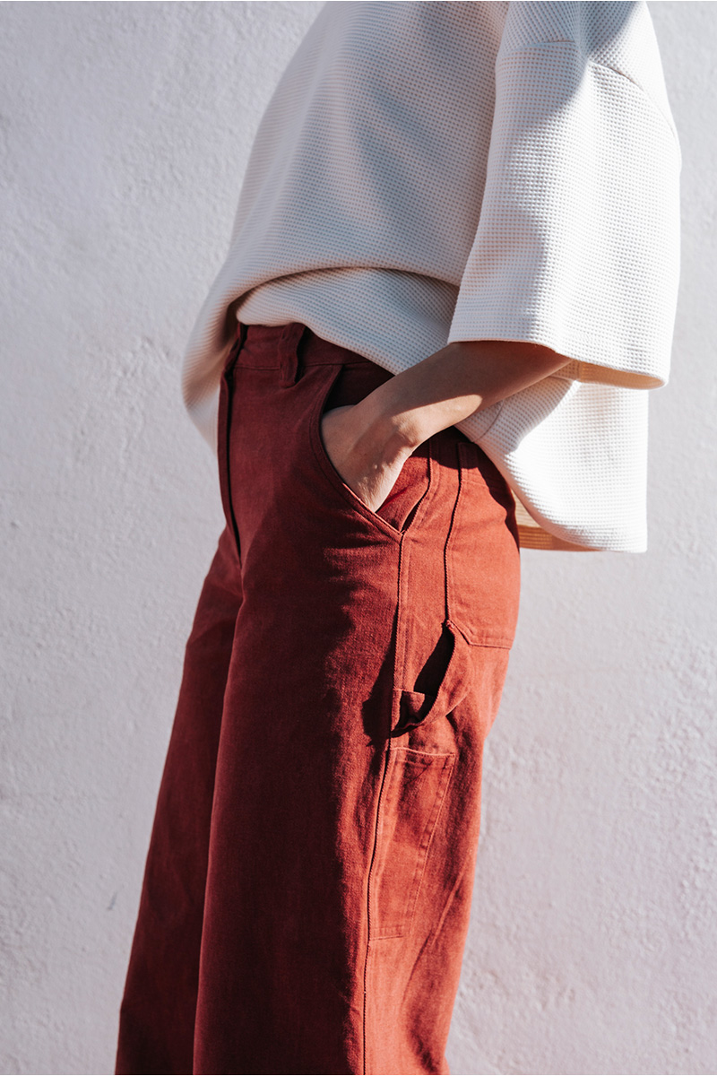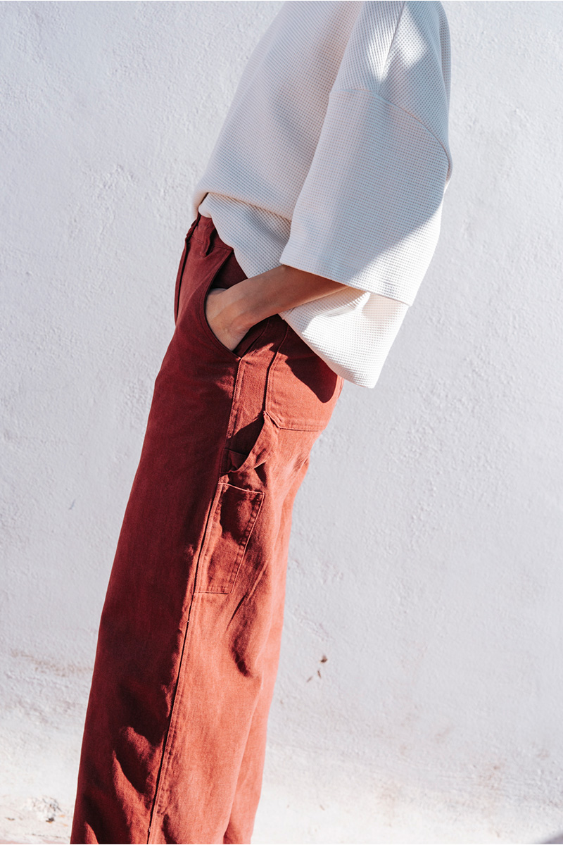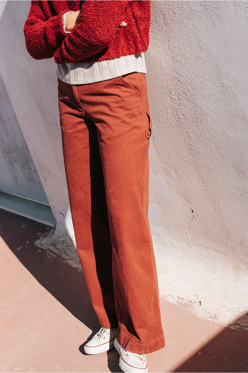 Φαρδύ παντελόνι βαμβακερό, με τσέπες στο πλάι και πίσω. Κλείσιμο μπροστά με φερμουάρ και κουμπί.
