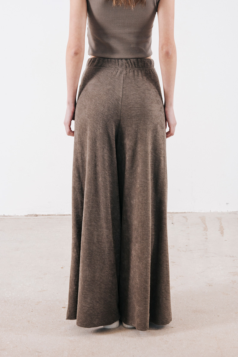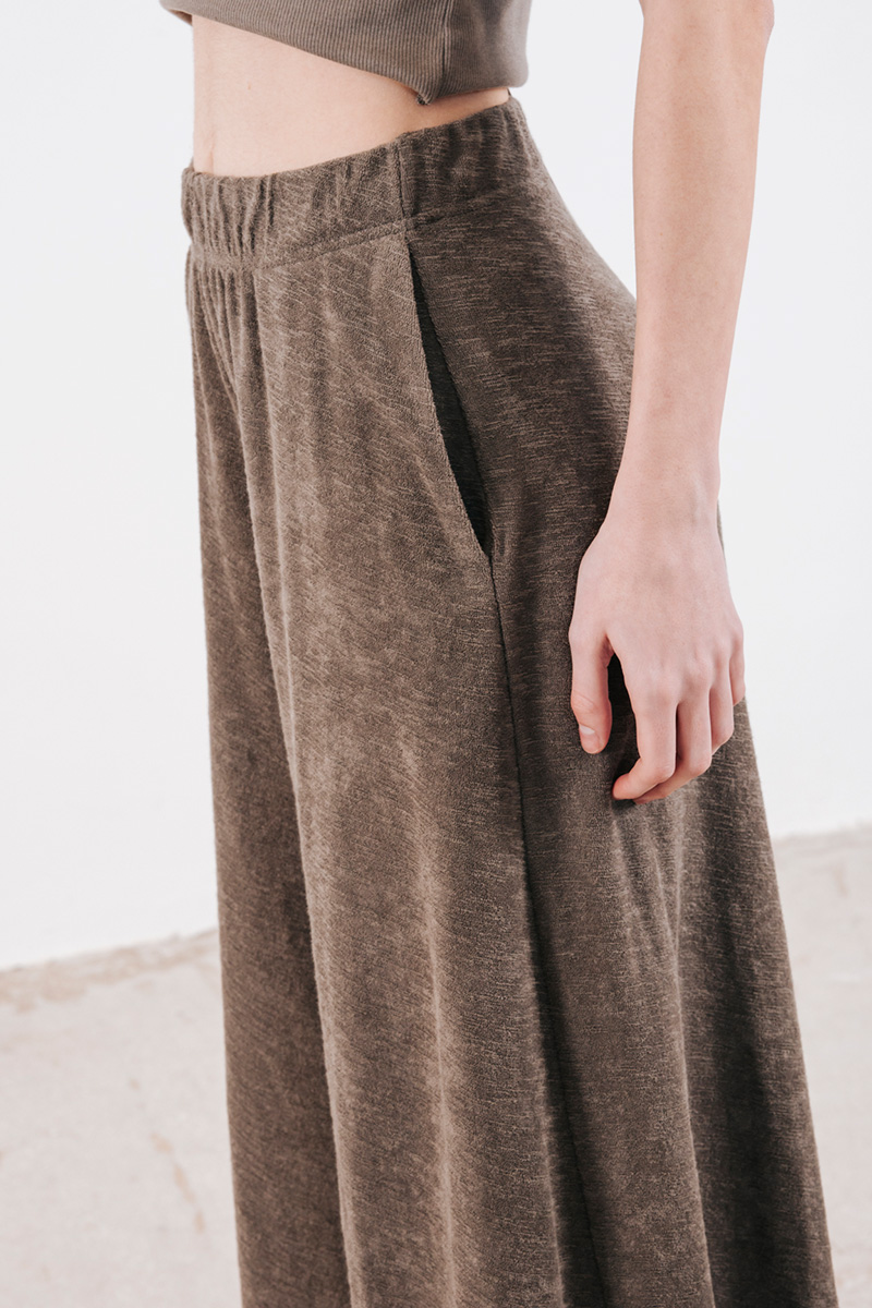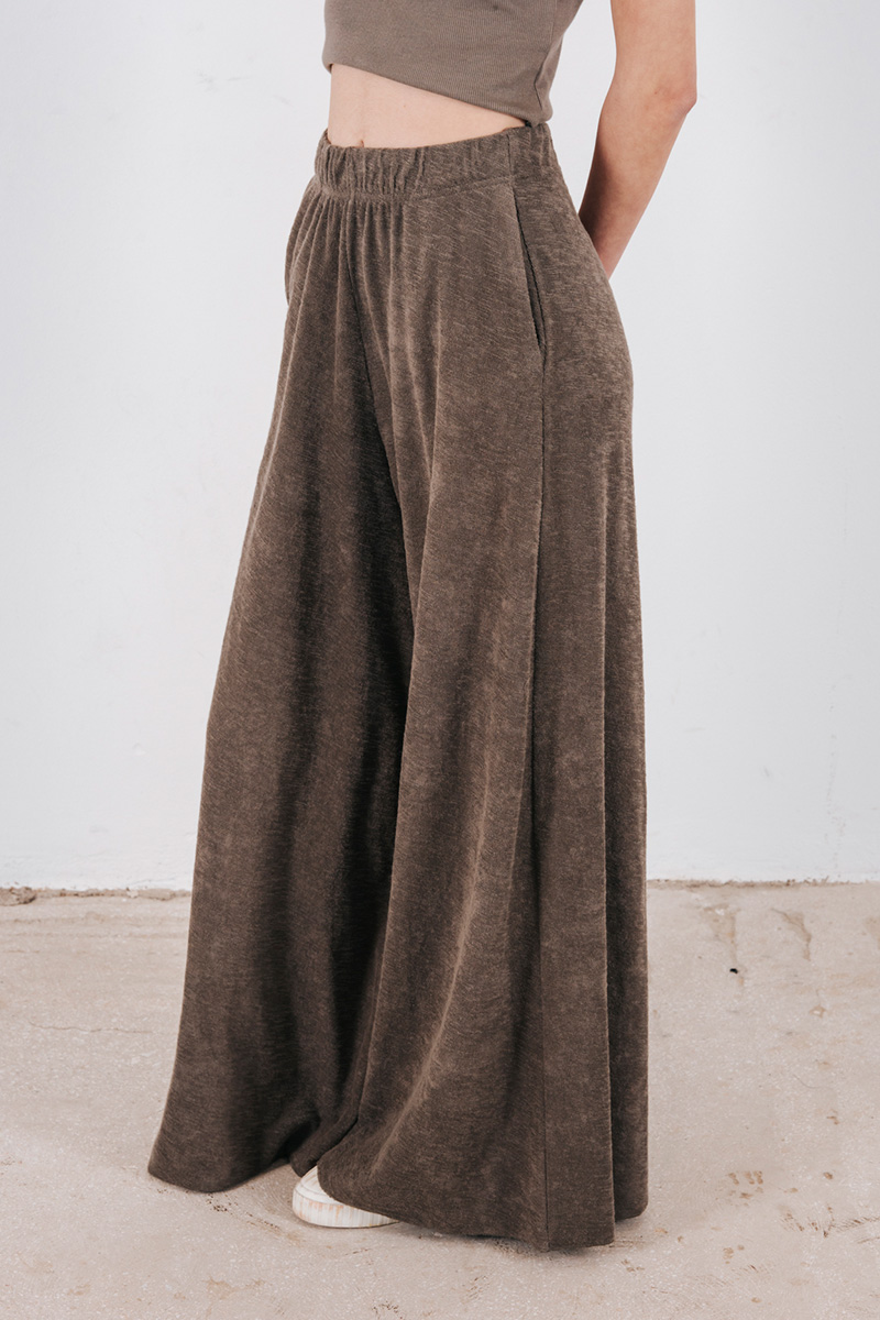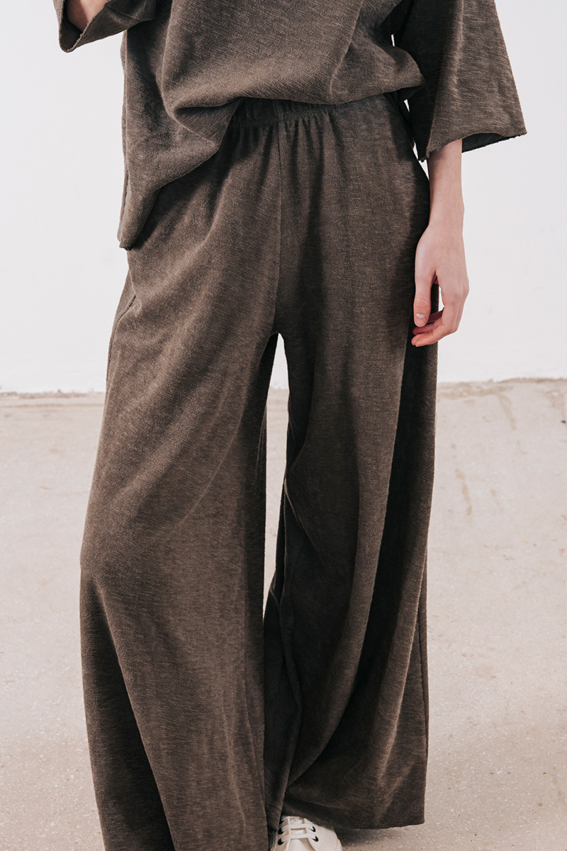 Φαρδιά παντελόνα βαμβακερή σε πετσετέ ύφασμα, με λάστιχο στη μέση και τσέπες στο πλάι.