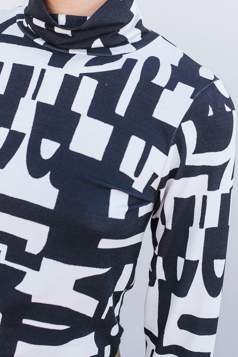 Εμπριμέ μπλούζα με ζιβάγκο και μακριά μανίκια.