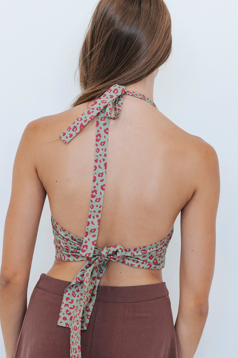 Βαμβακερή εμπριμέ μπλούζα με δέσιμο στο λαιμό και πίσω.