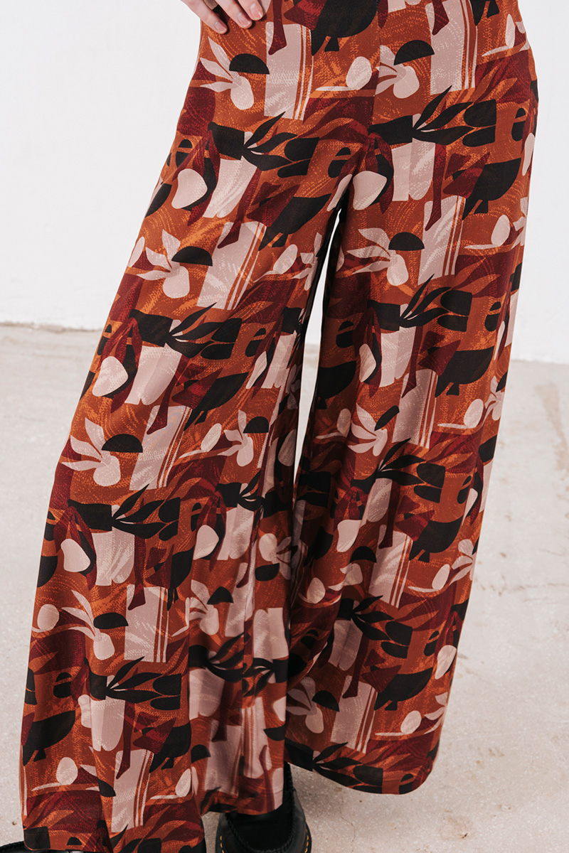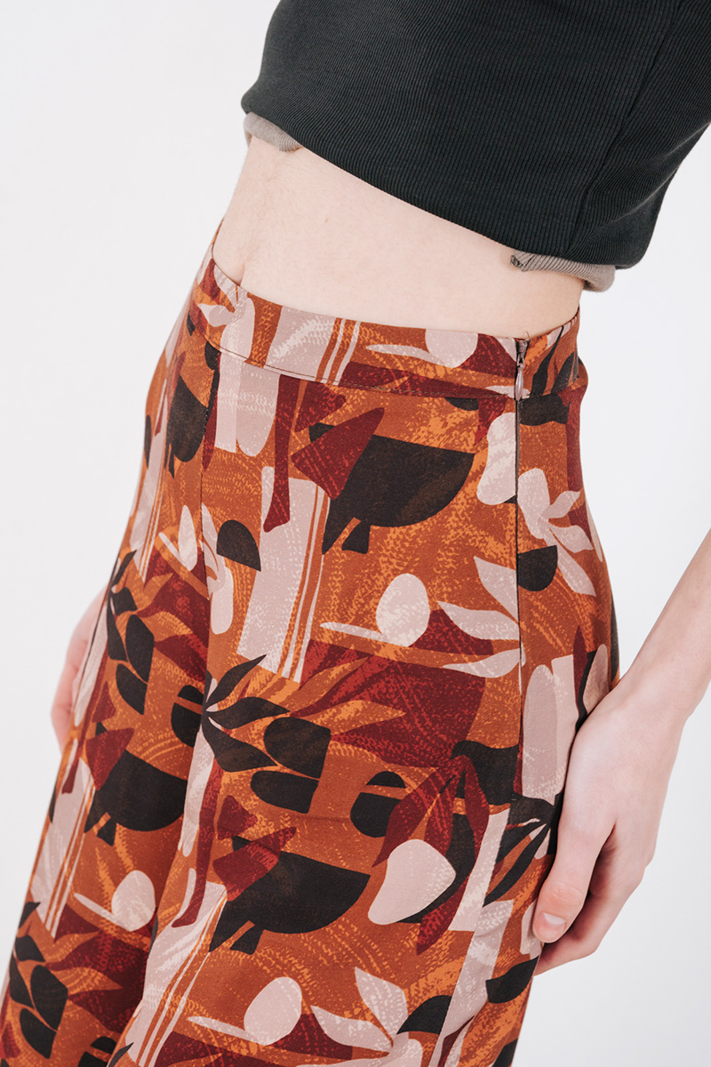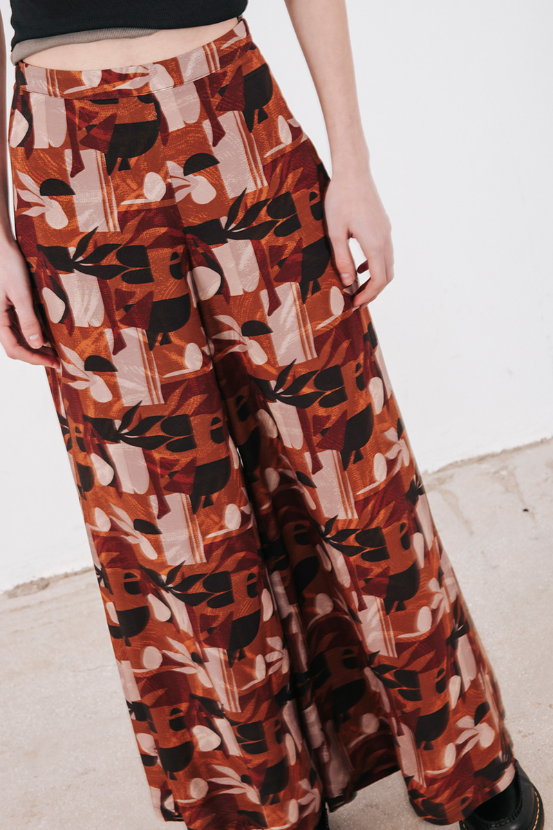 Εμπριμέ παντελόνα, κλείσιμο στο πλαί με κρυφό φερμουάρ.