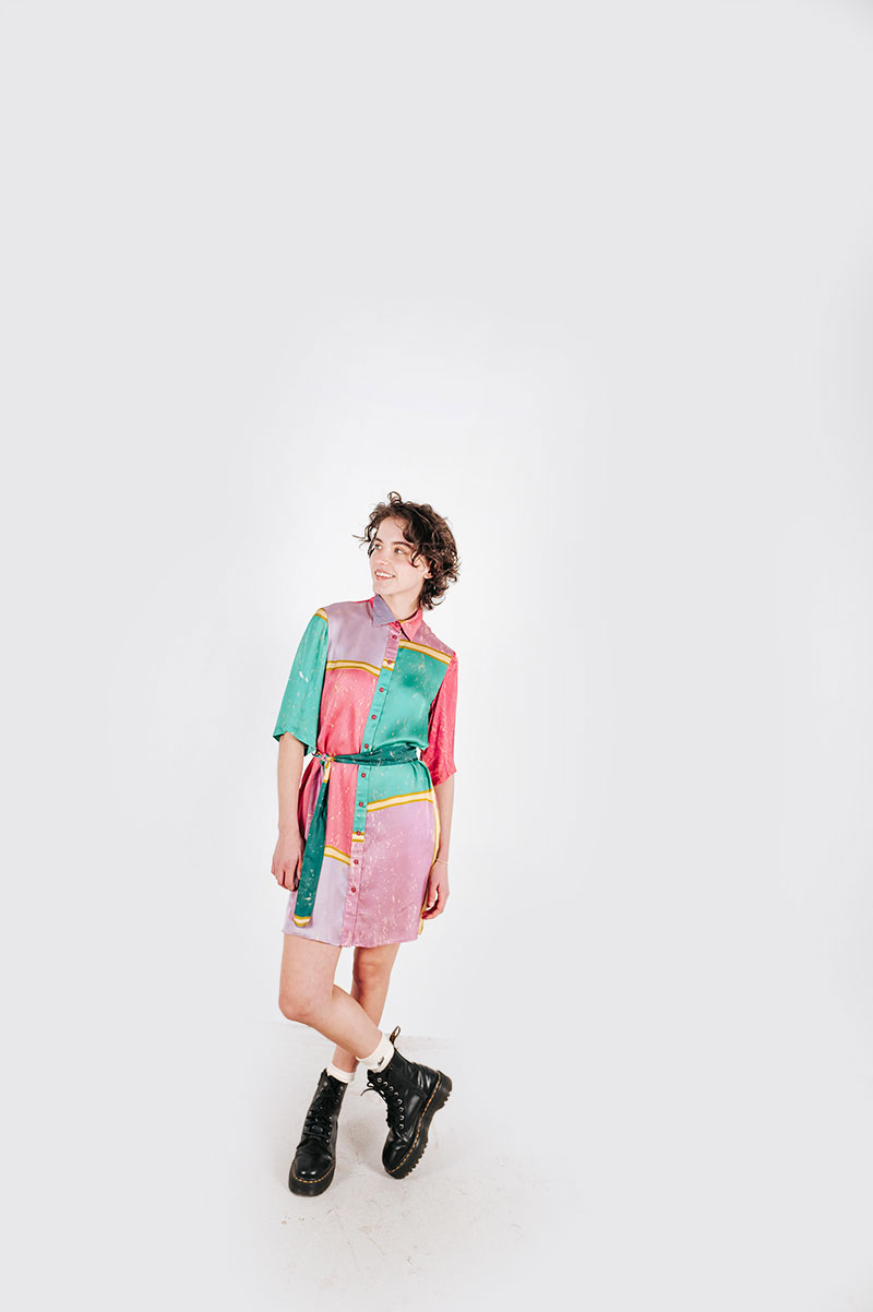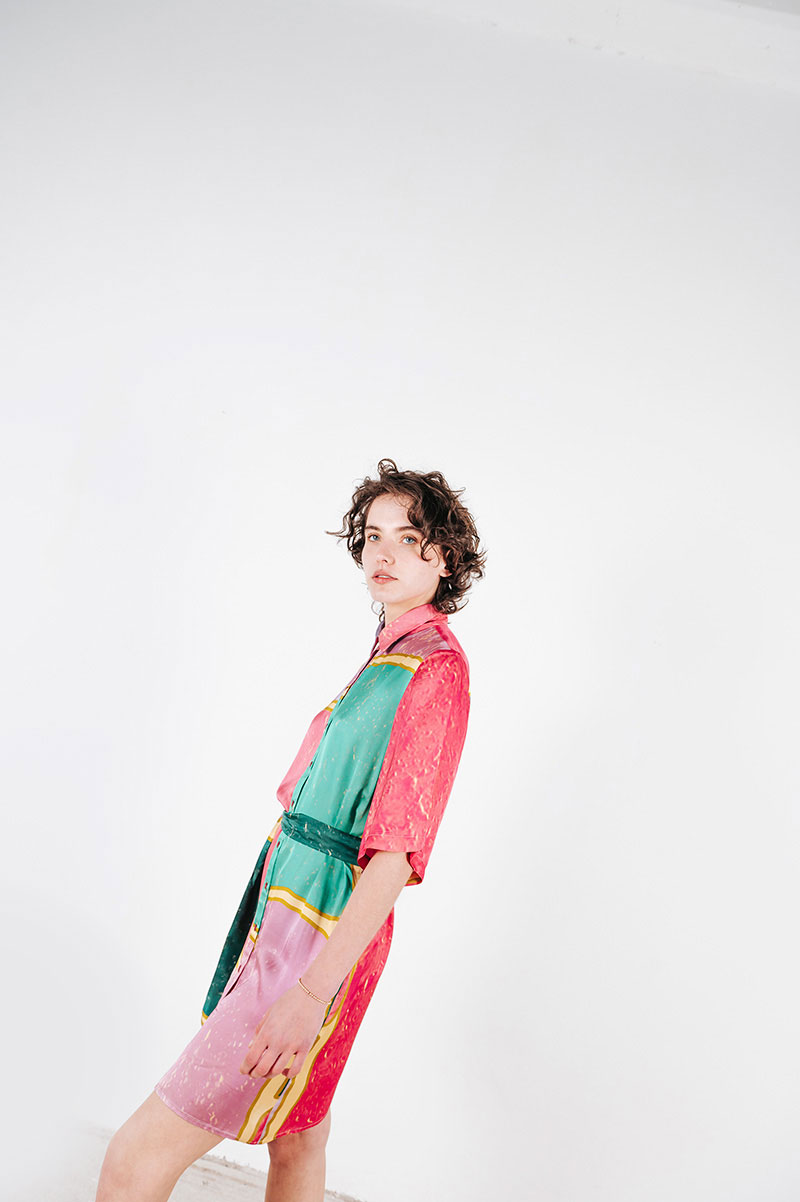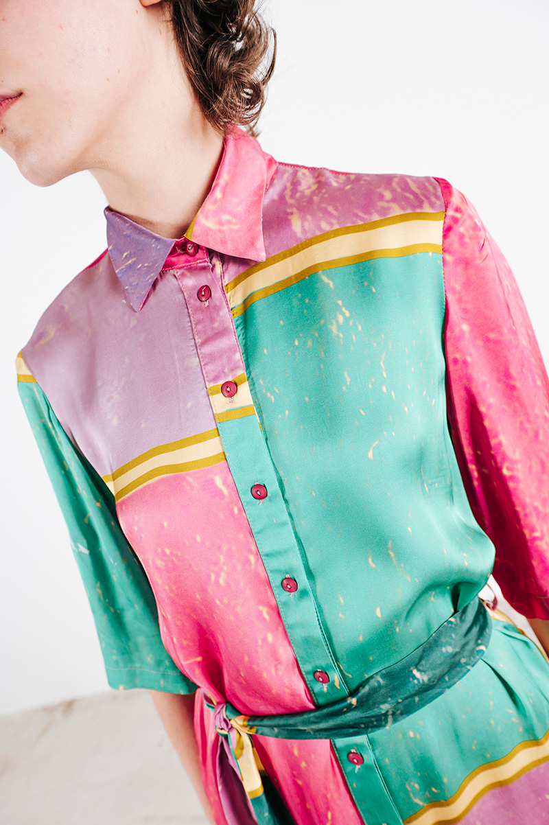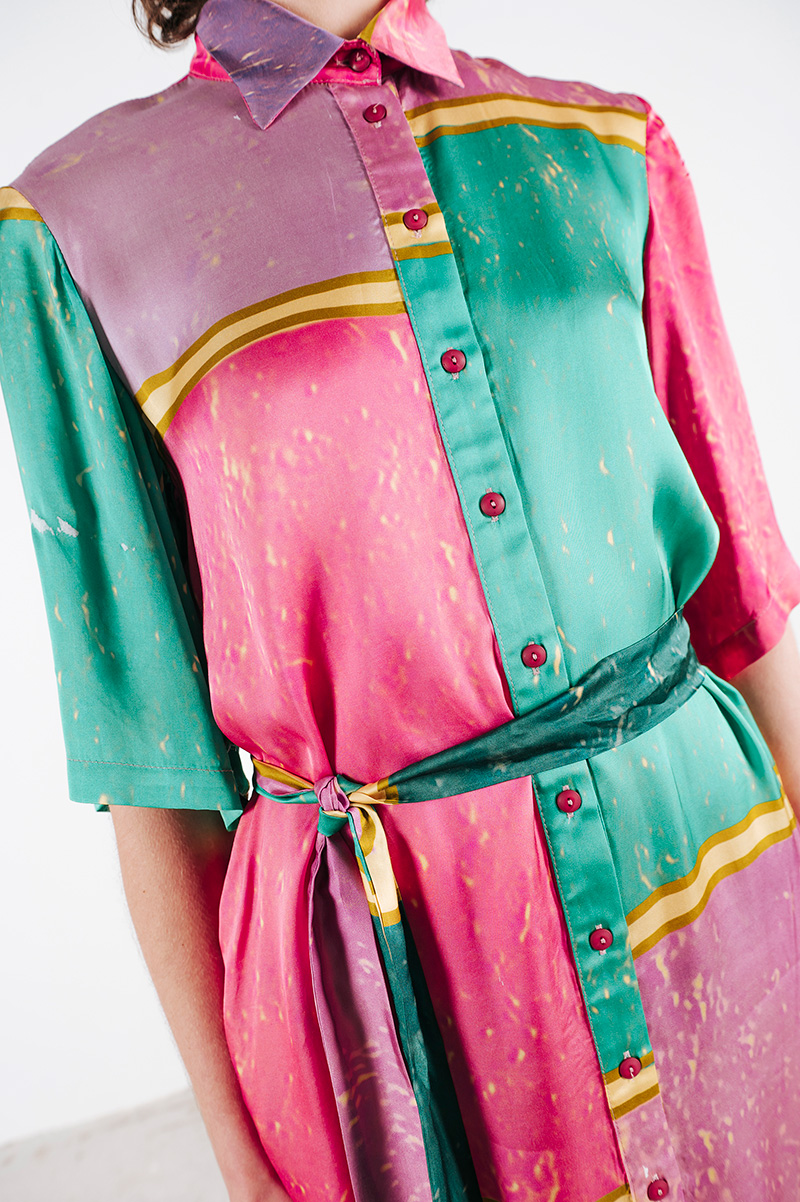 Εμπριμέ μίνι φόρεμα σατέν με γιακά.