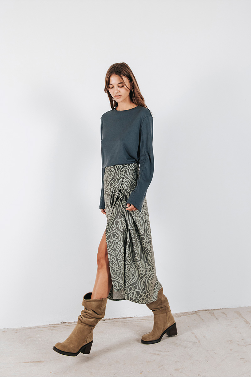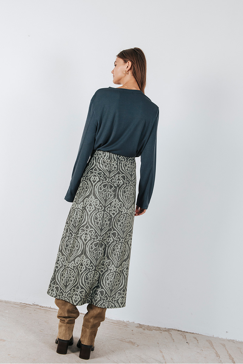 Εμπριμέ μίντι φούστα κρουαζέ, κλείσιμο στο πίσω μέρος με κρυφό φερμουάρ.
