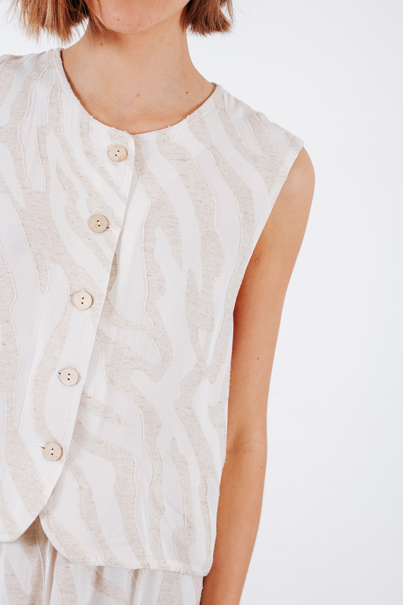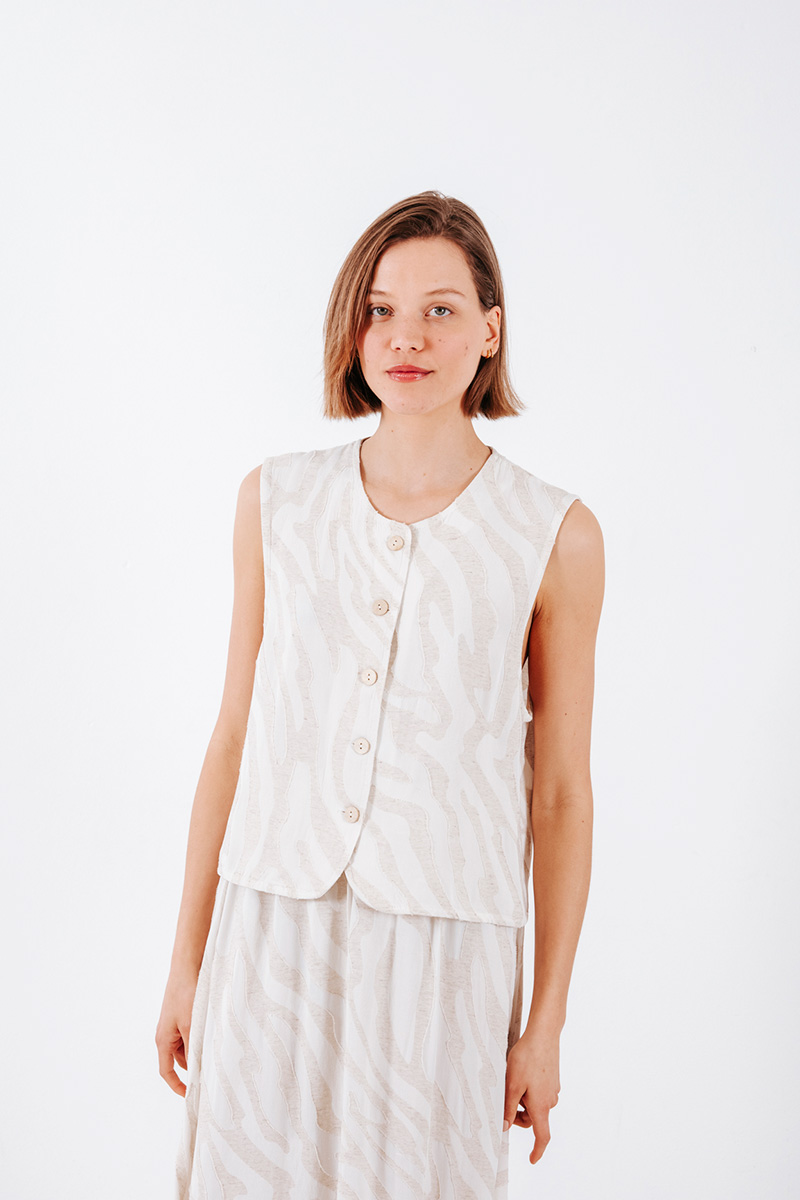 Ζακάρ γιλέκο με στρογγυλή λαιμόκοψη και κλείσιμο μπροστά με κουμπιά.