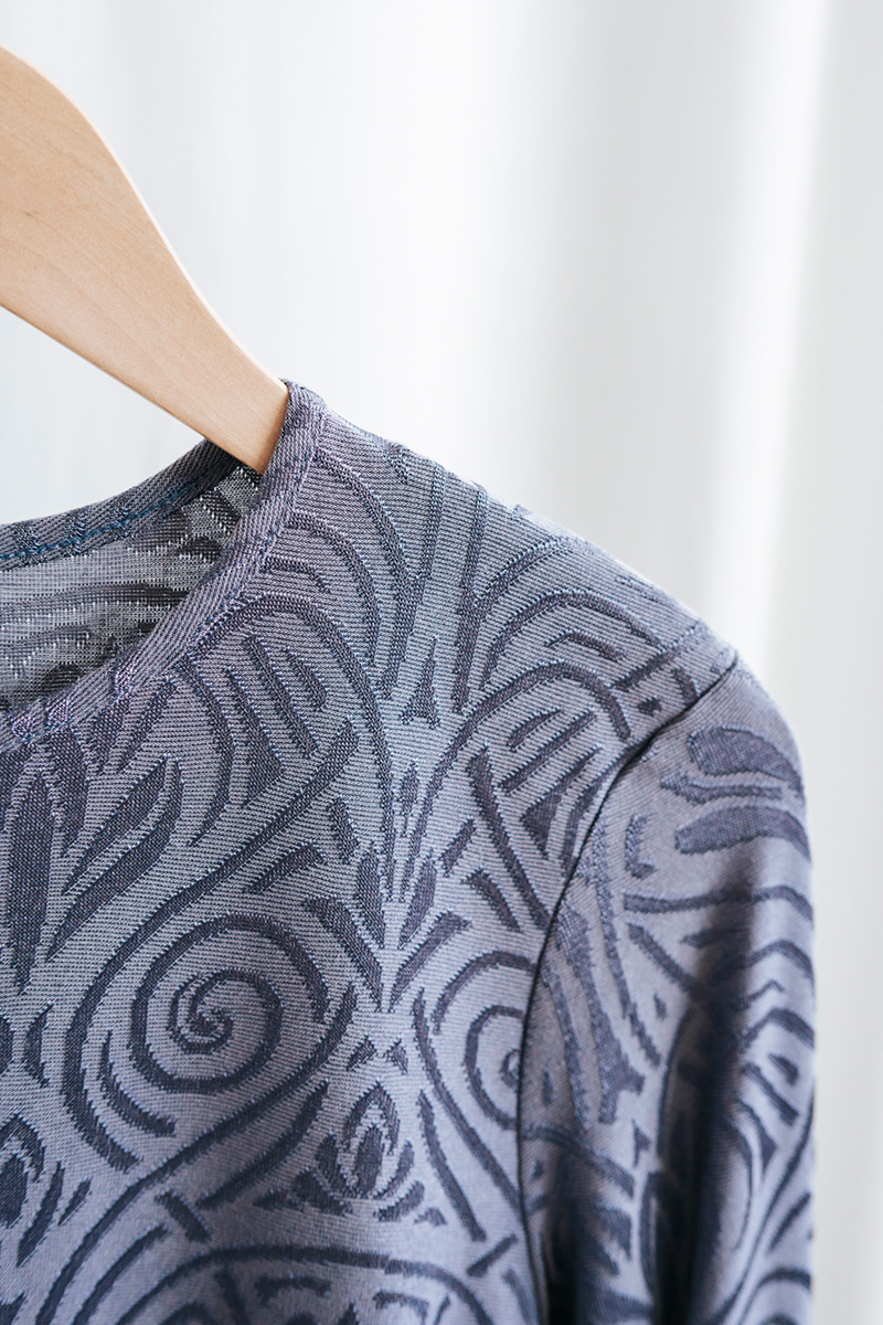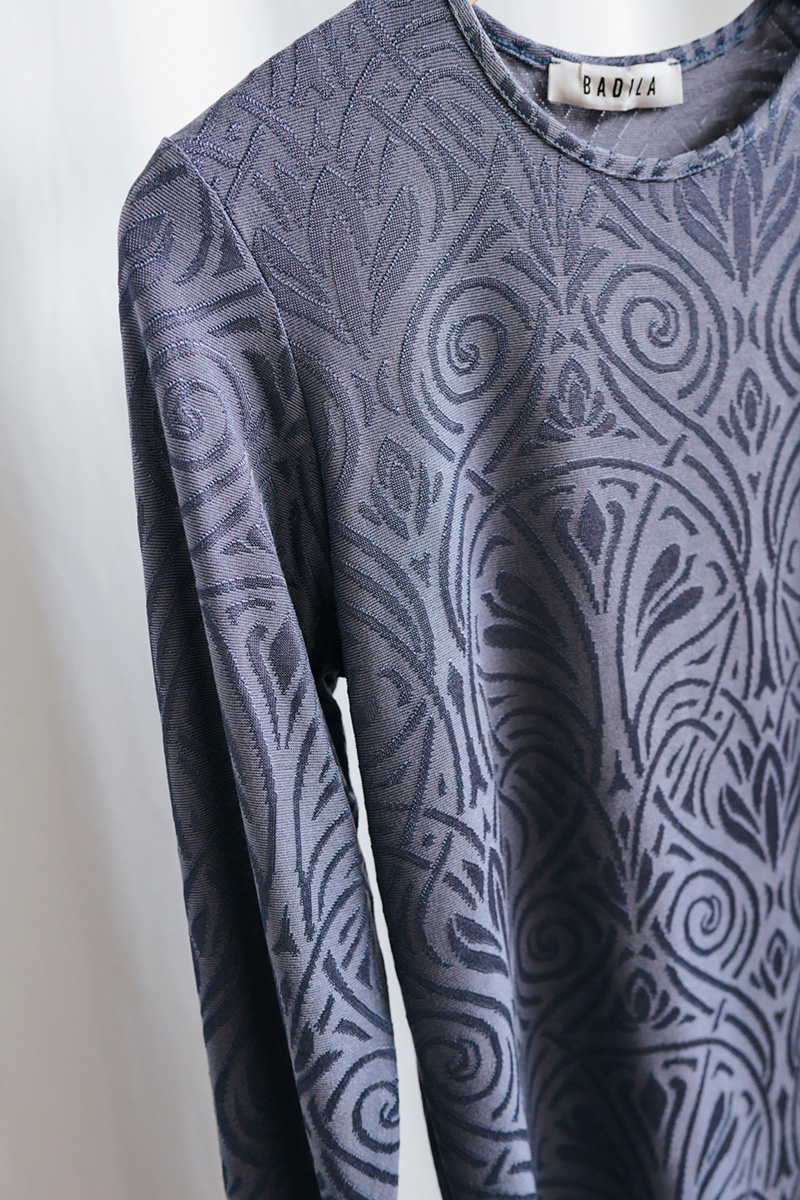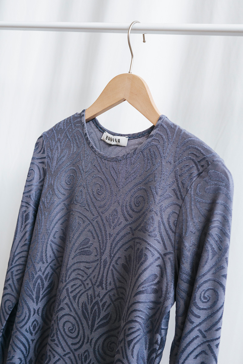 Μπλούζα ζακάρ με μακριά μανίκια και στρογγυλή λαιμόκοψη.