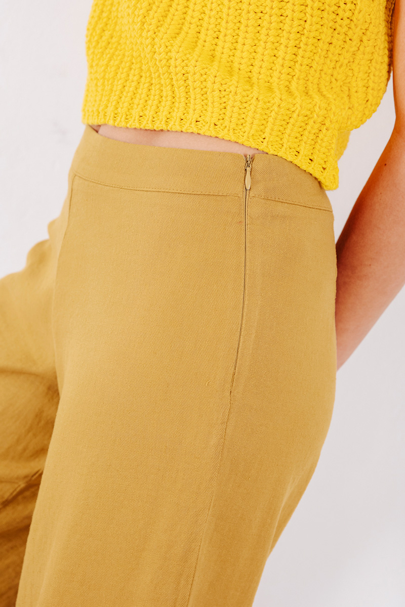 Χαμηλόμεσο παντελόνι με ίσια γραμμή και φερμουάρ στο πλάι.