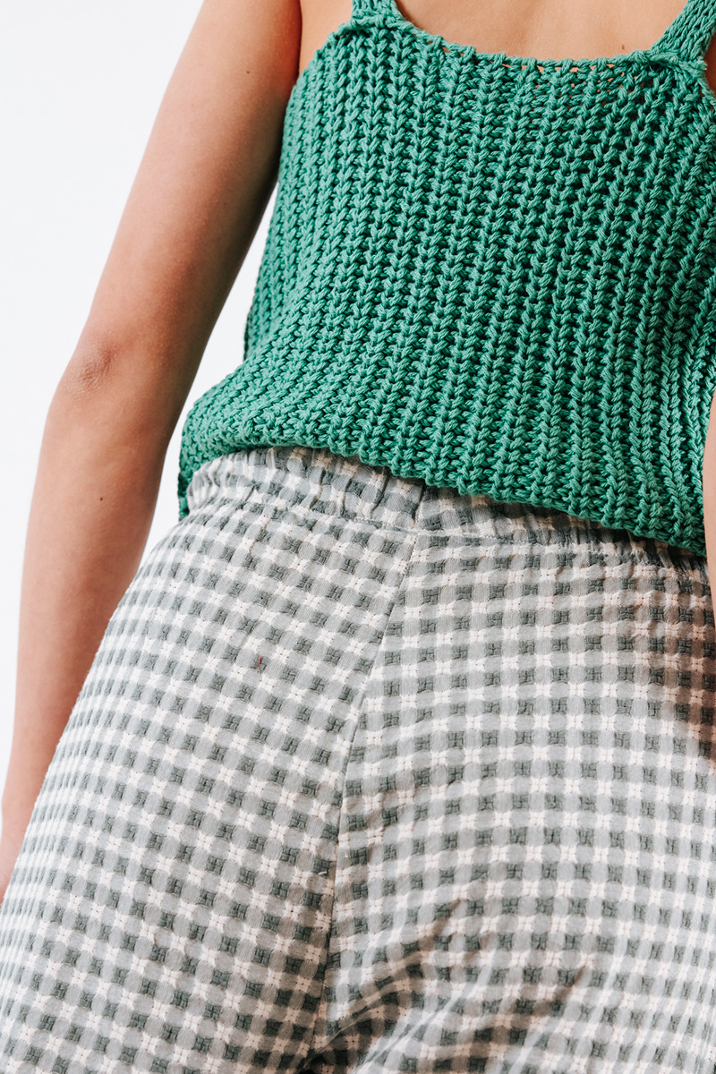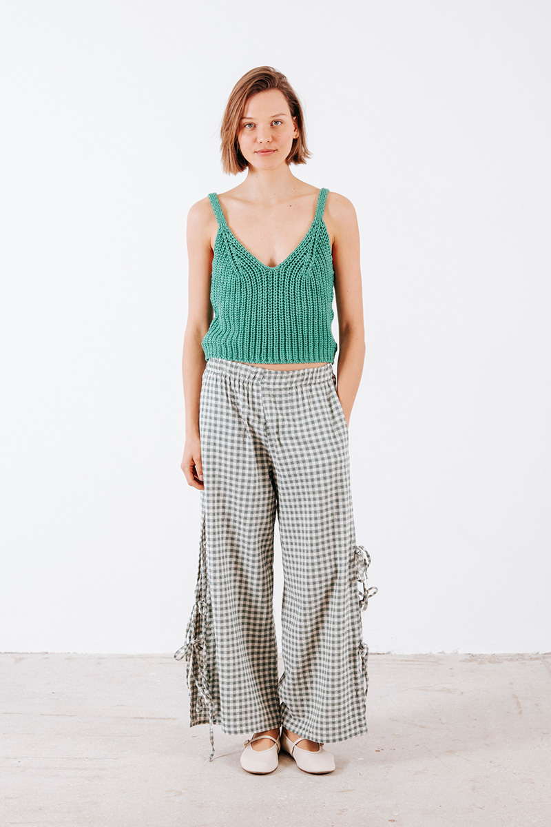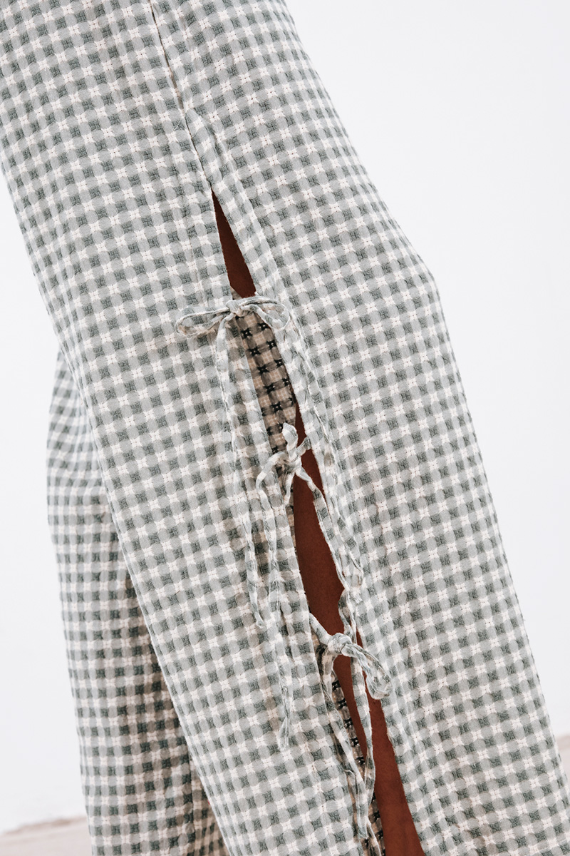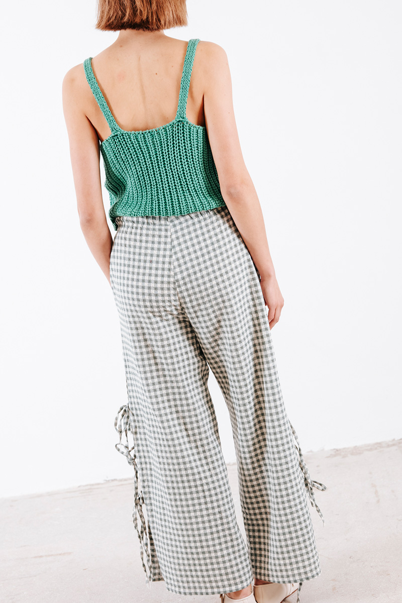 Καρό παντελόνι με λάστιχο στη μέση και δεσίματα στο πλάι.