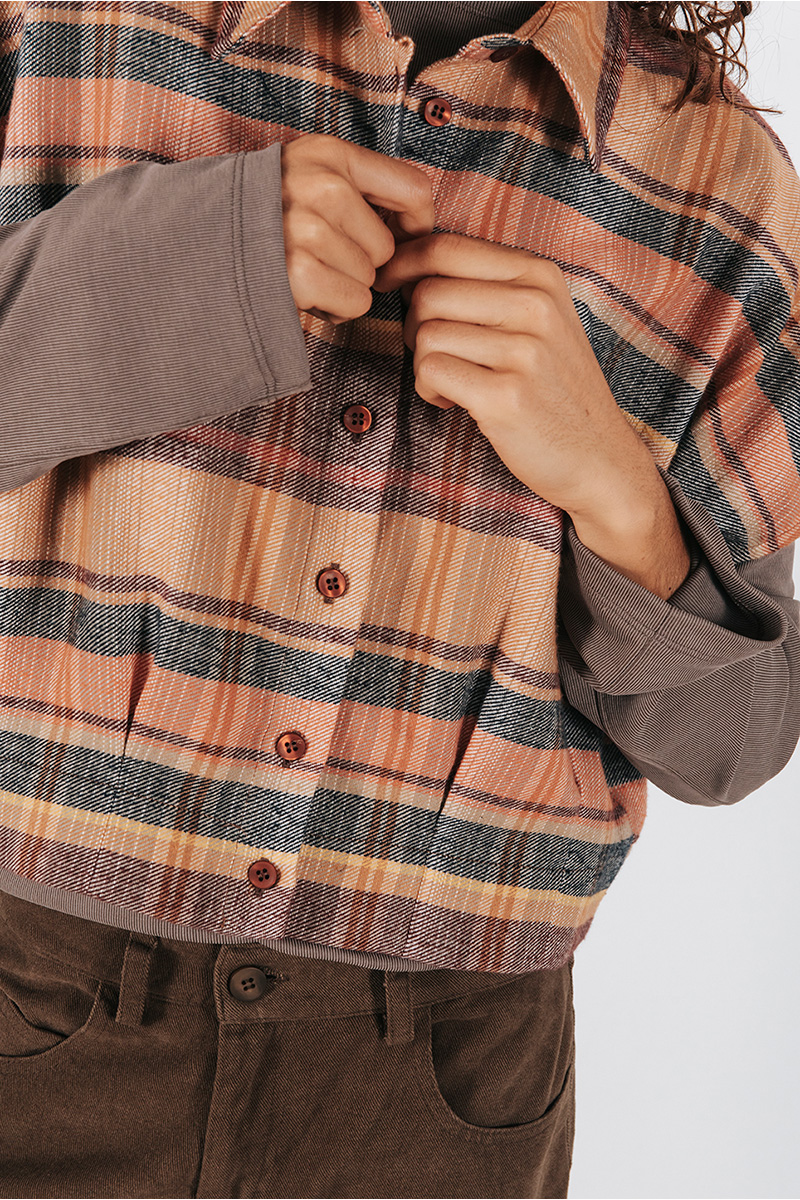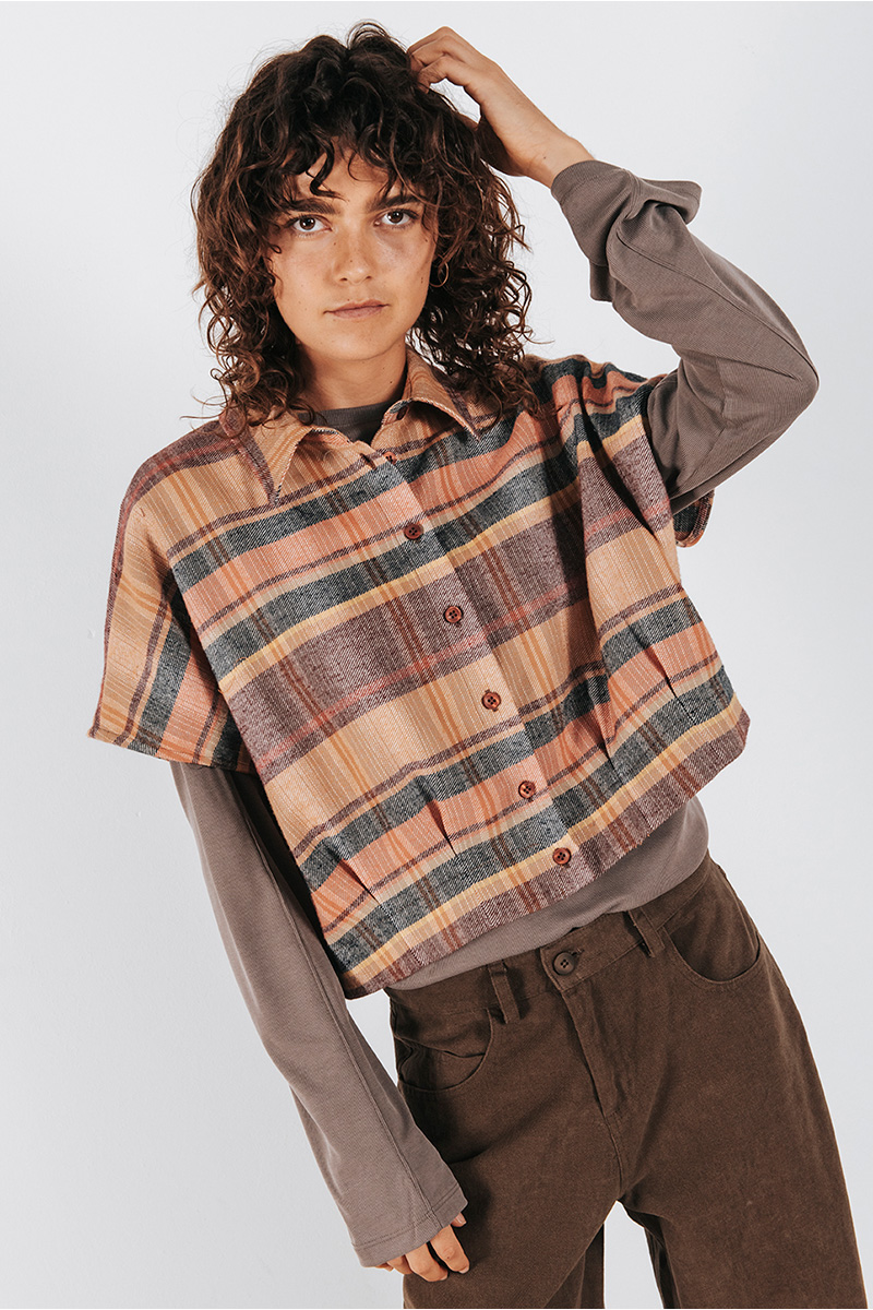 Καρό πουκάμισο κοντομάνικο με γιακά και κλείσιμο μπροστά με κουμπιά.