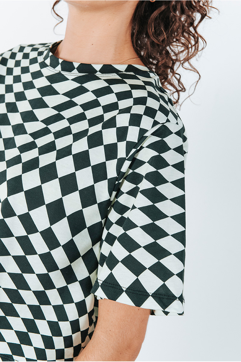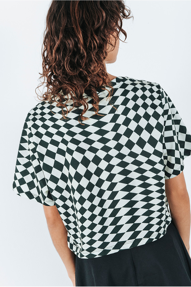 Καρό μπλούζα κοντομάνικη cropped από οργανικό βαμβάκι.