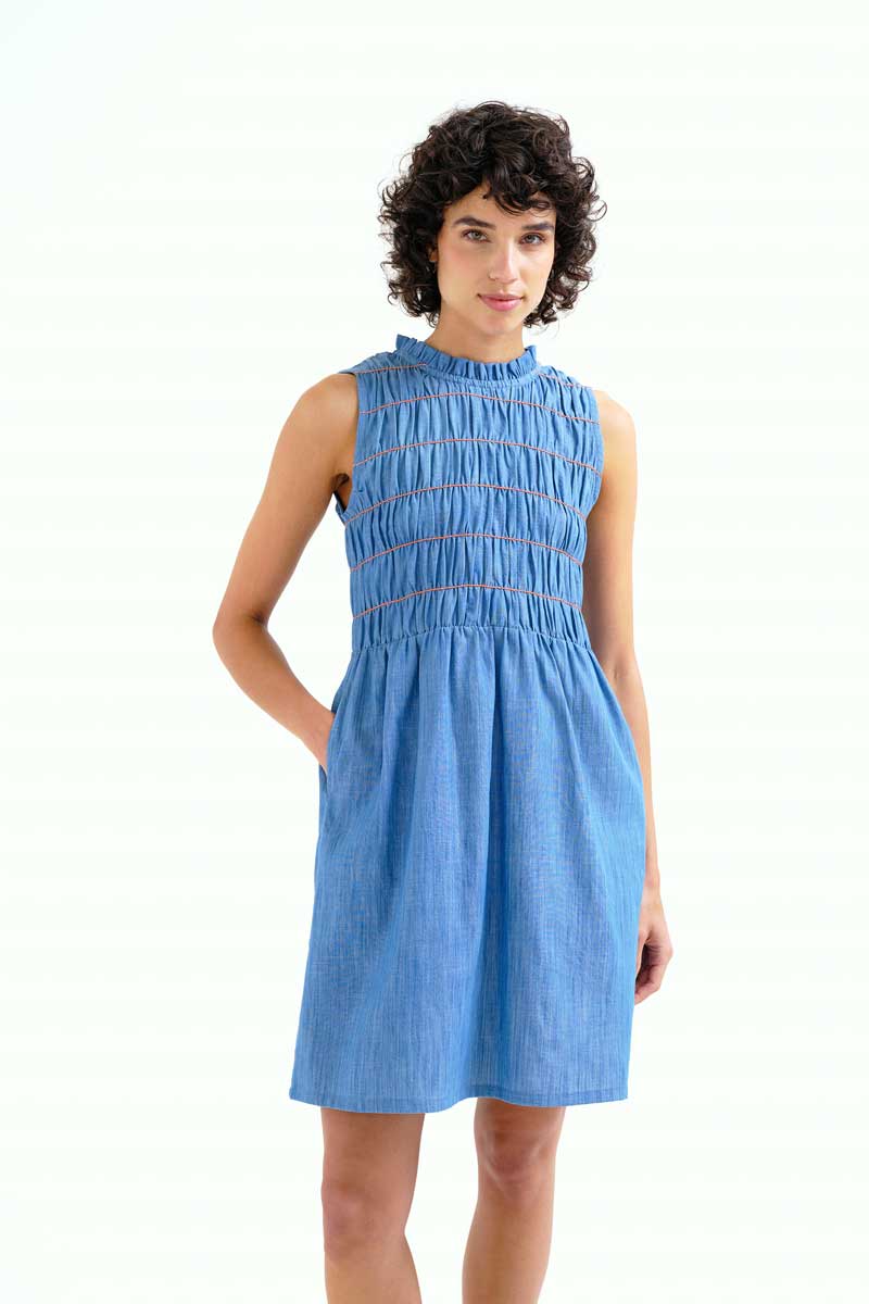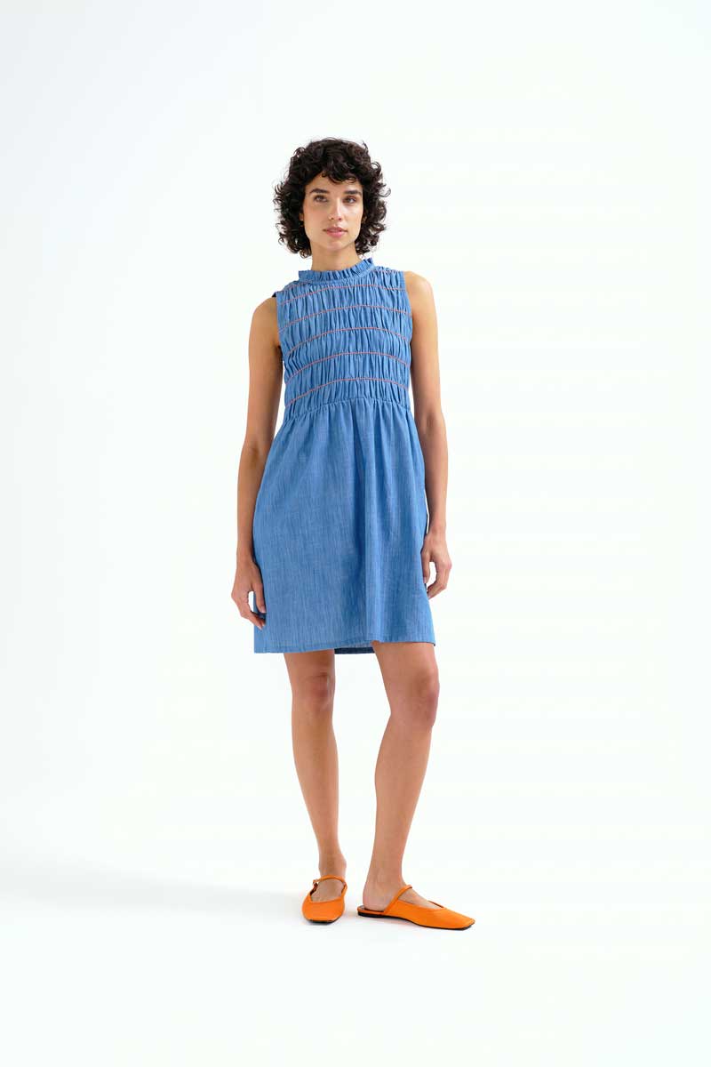 Κοντό φόρεμα σε ανοιχτό μπλε χρώμα από 100% βαμβακερό ύφασμα chambray.