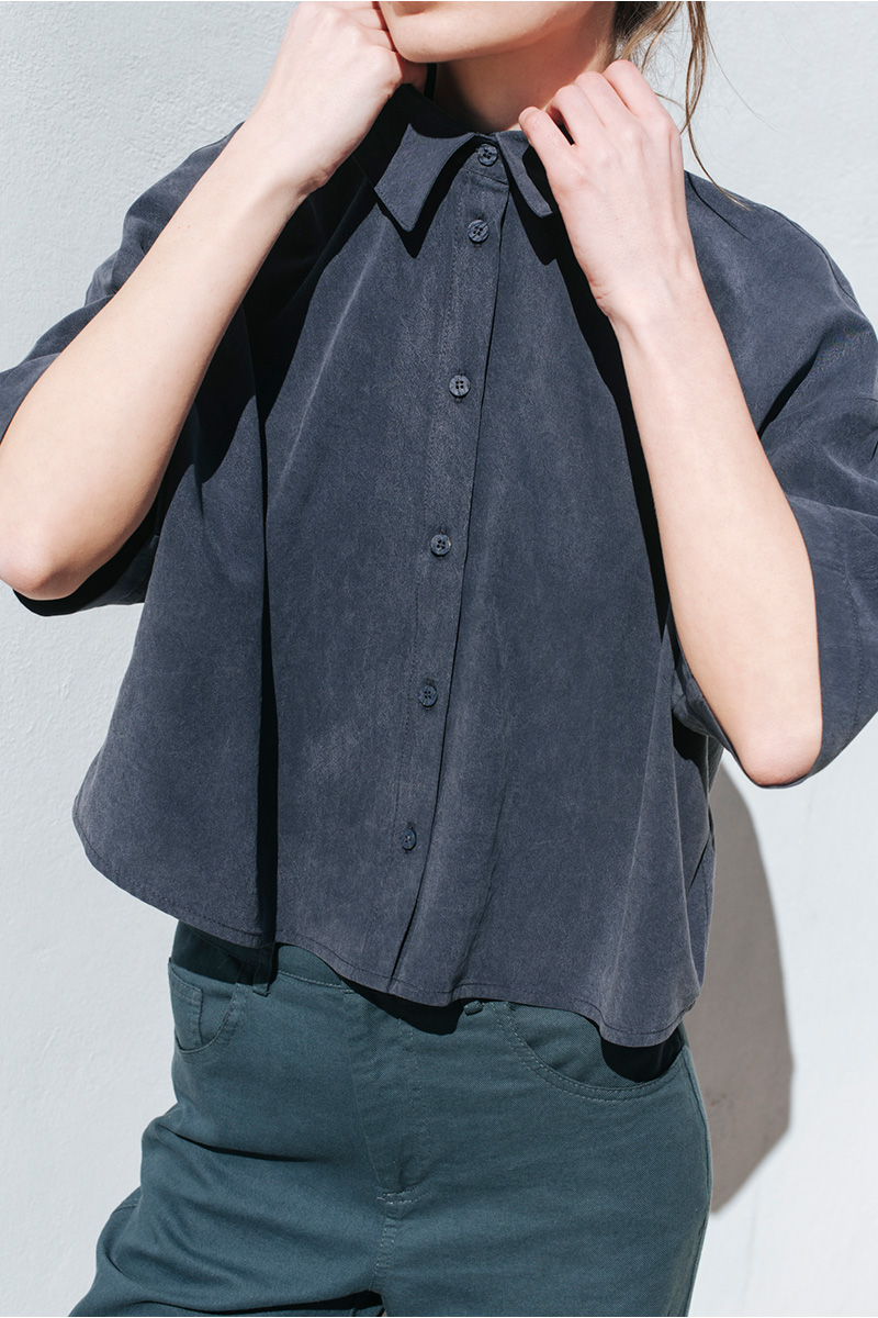 Πουκάμισο κοντό με γιακά και κλείσιμο μπροστά με κουμπιά.