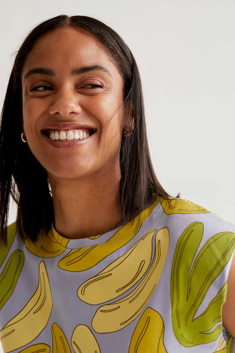 Κοντό φόρεμα από 100% βαμβακερό ύφασμα με Banana print.
