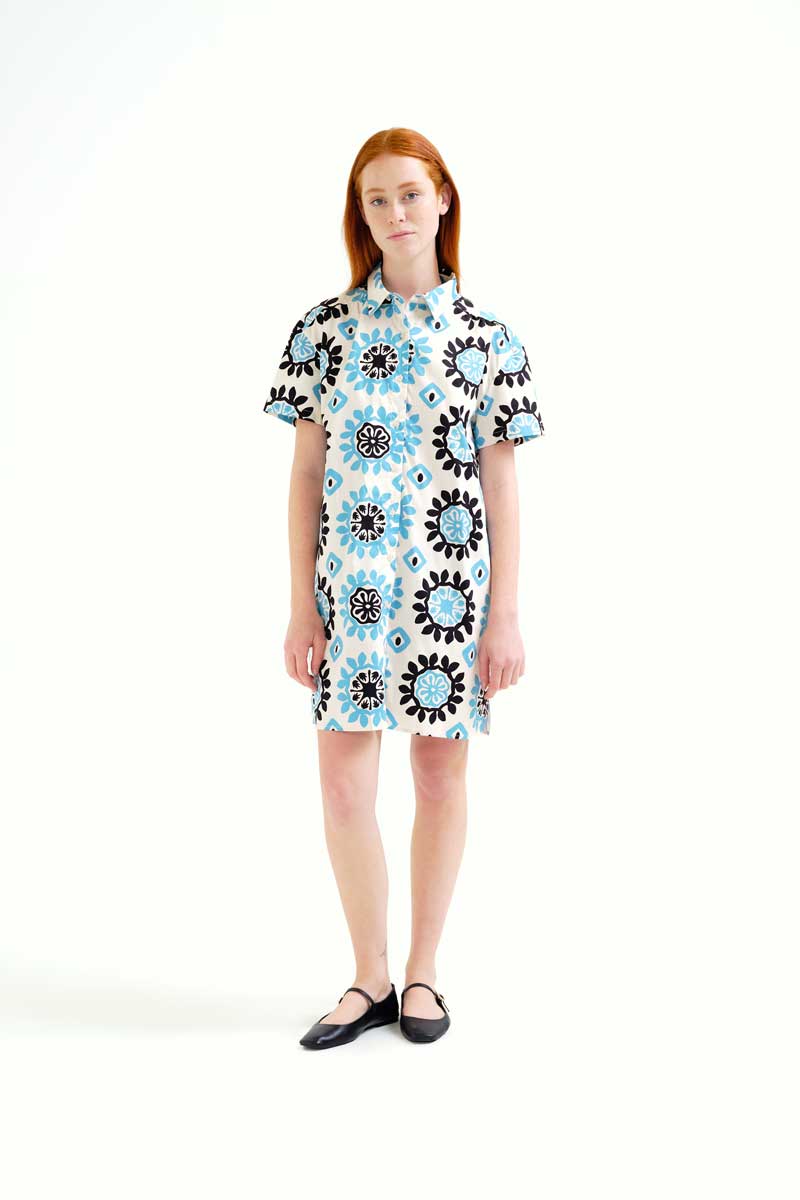 Κοντό φόρεμα από 100% βαμβάκι με τύπωμα Waterfall.