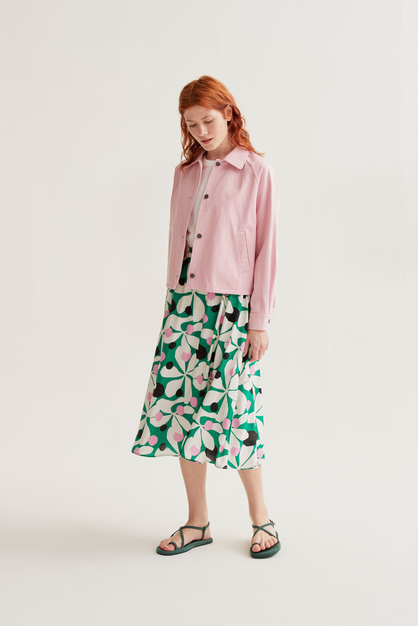 Μίντι φούστα από ελαφρύ κρεπ ύφασμα με τύπωμα hosta.