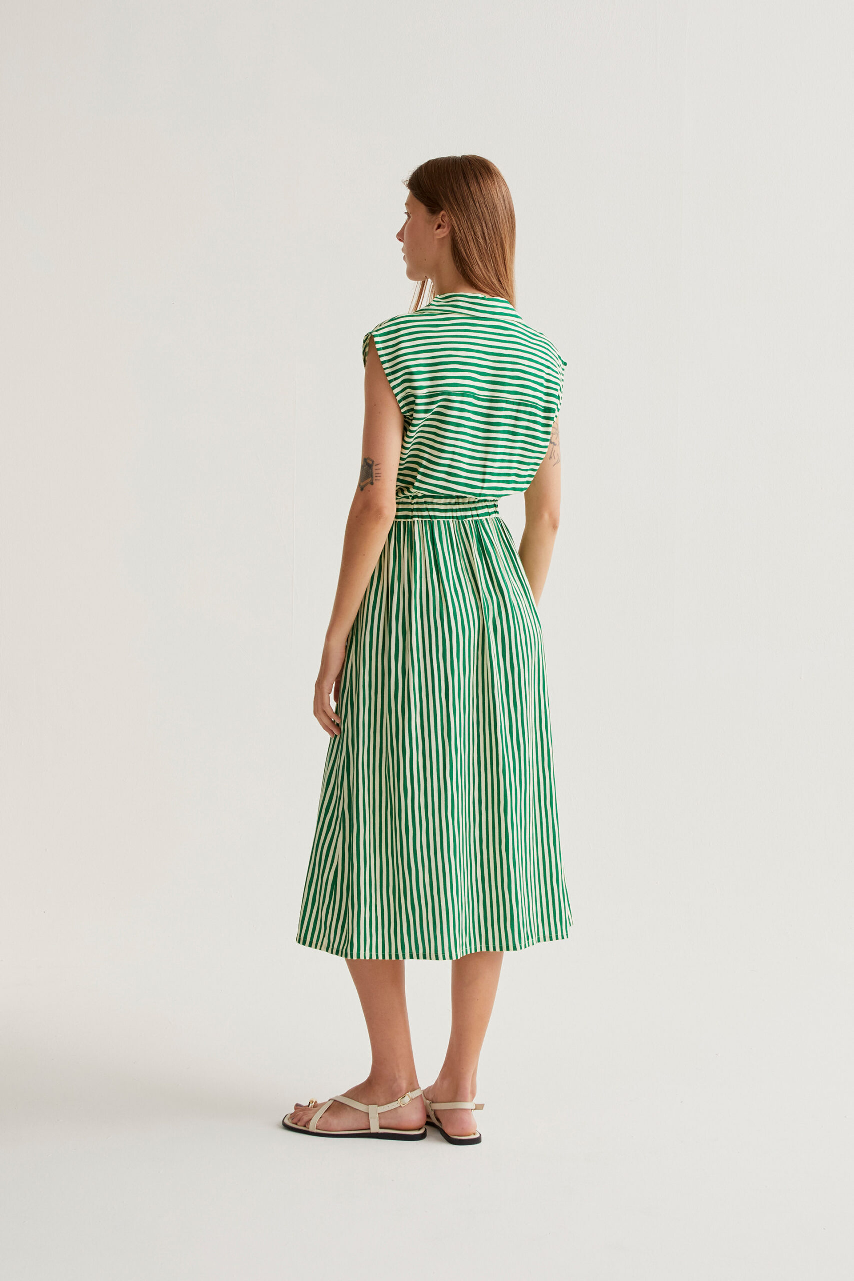Φόρεμα μίντι με τύπωμα Lavagna σε πράσινο χρώμα. Γιακάς με πέτο και αμάνικο.