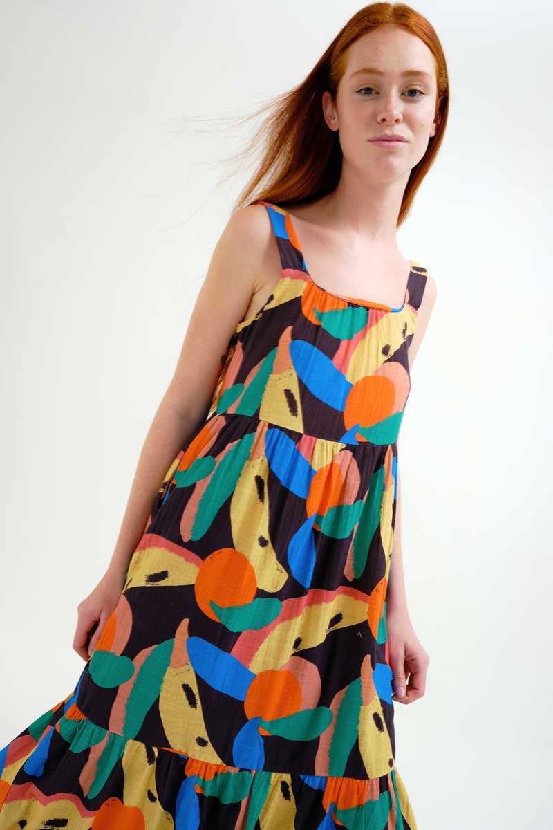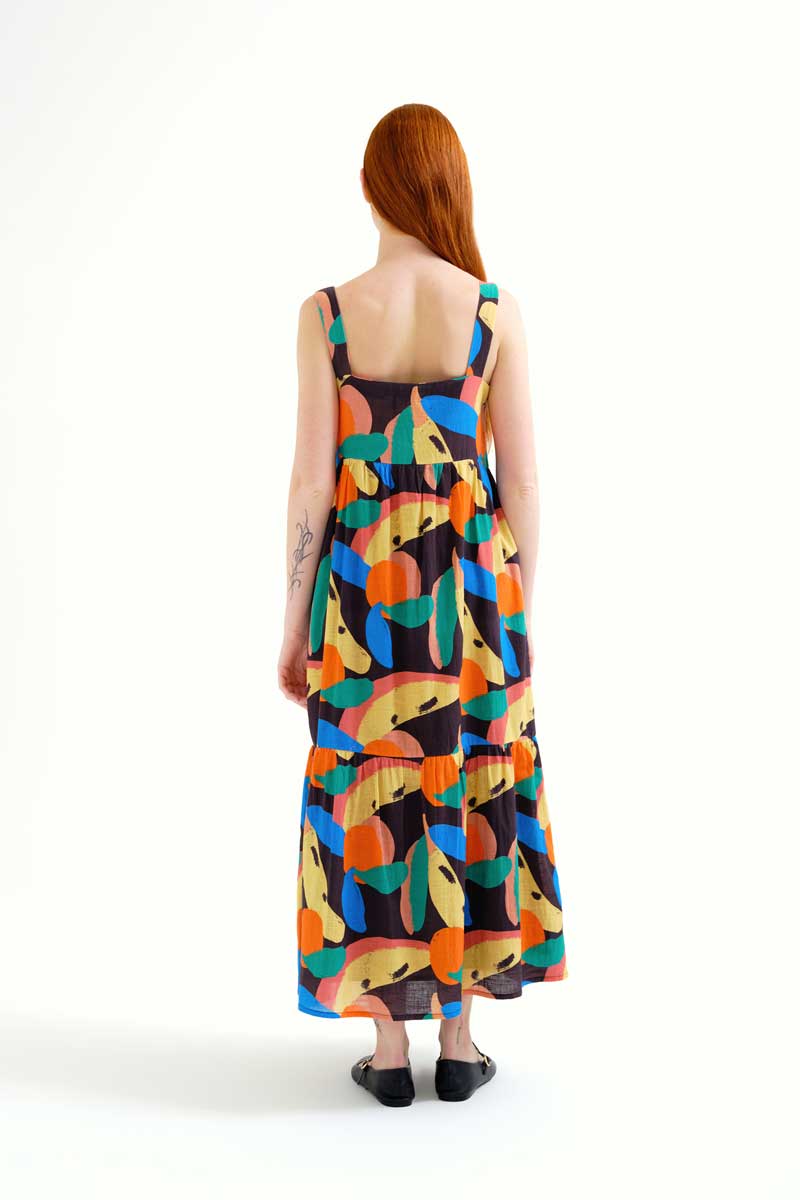 Μακρύ φόρεμα από 100% βαμβάκι με Tutti Frutti print.