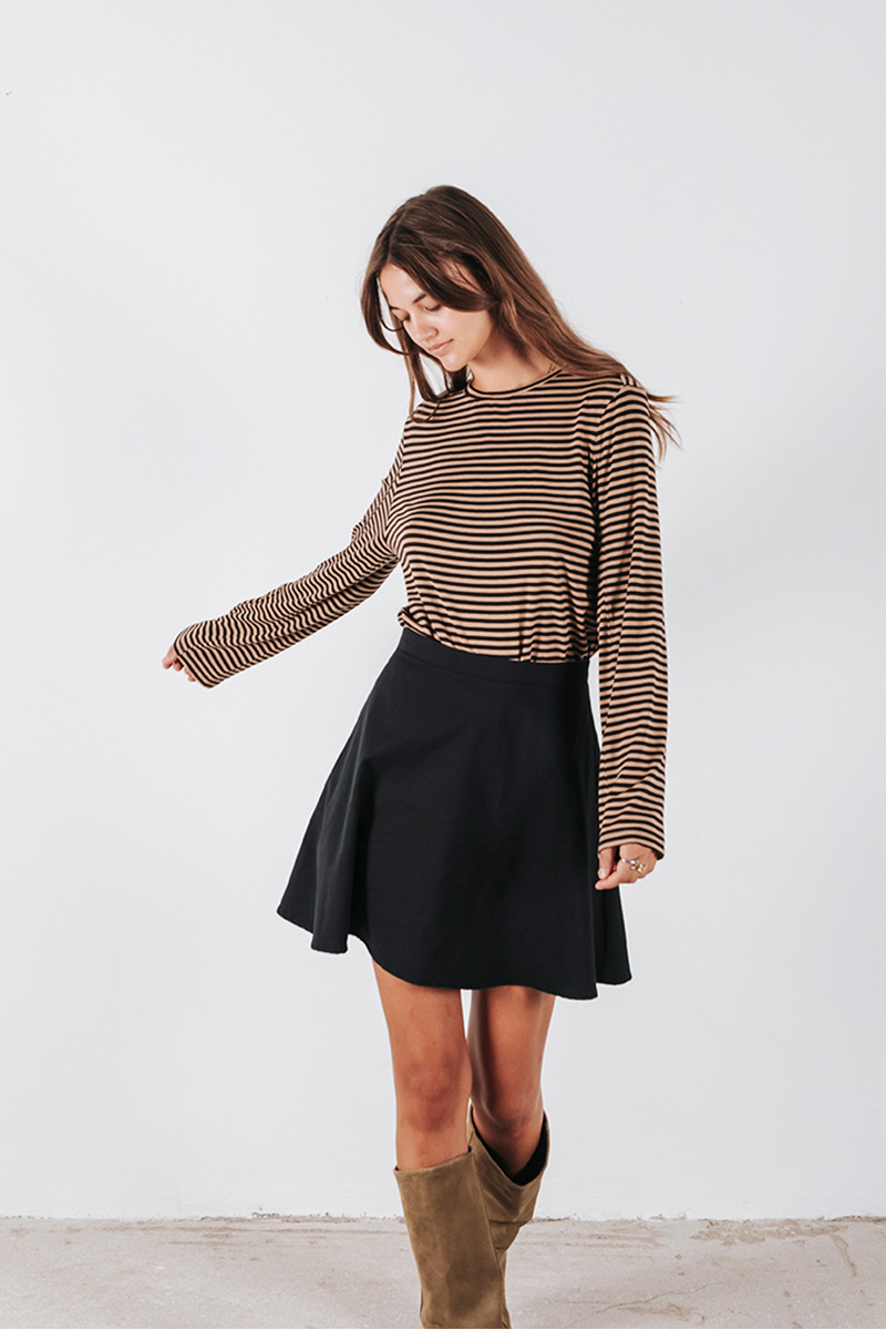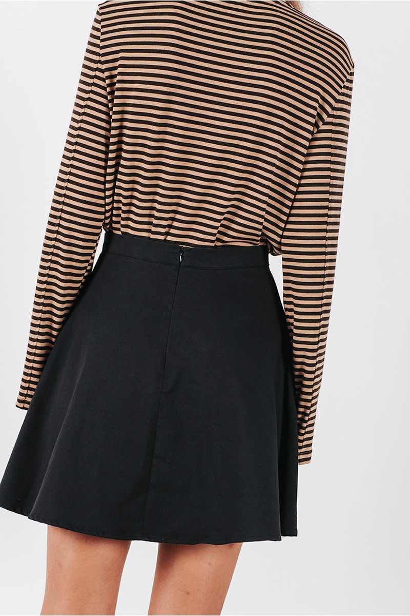 Μίνι φούστα, κλείσιμο με κρυφό φερμουάρ πίσω.
