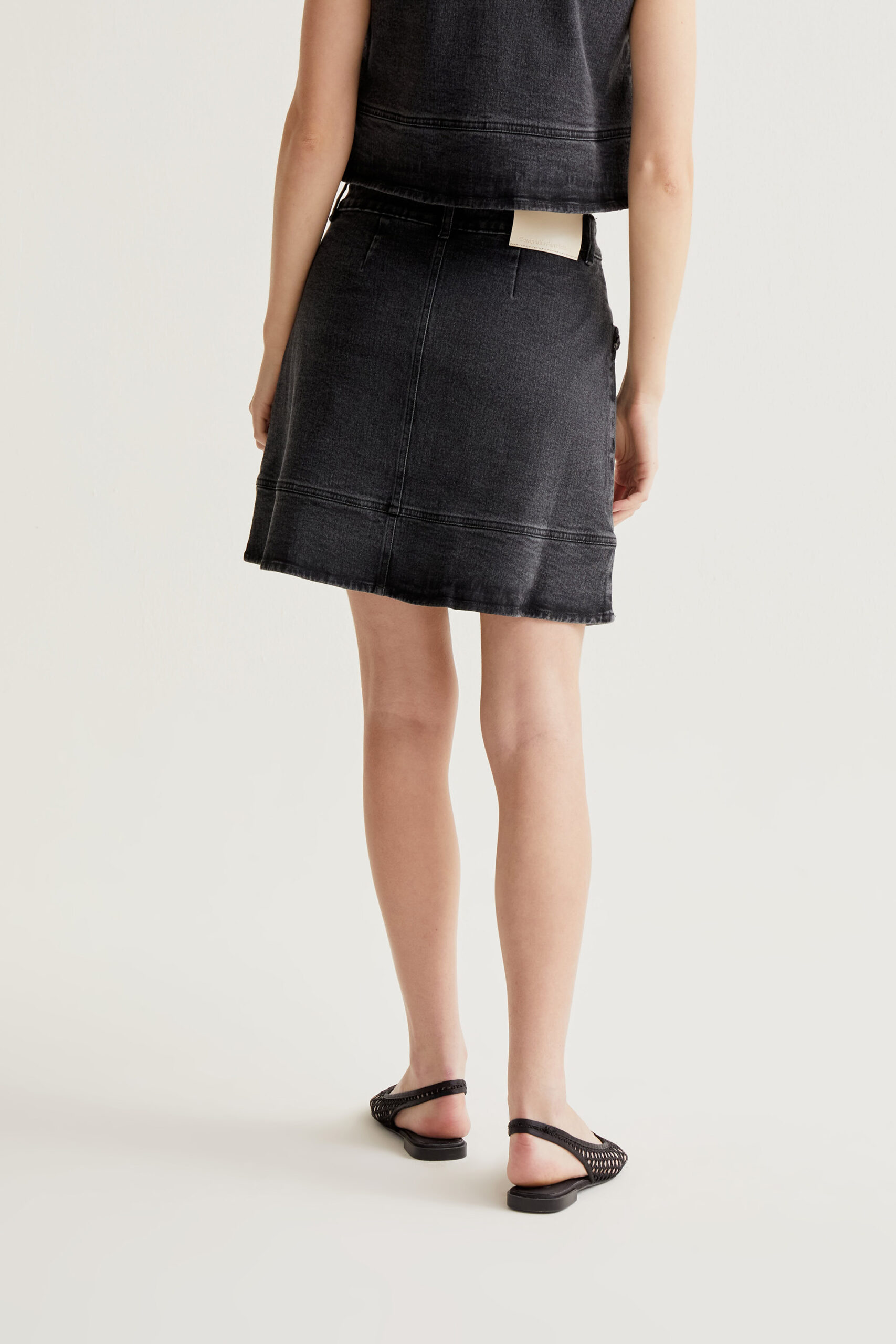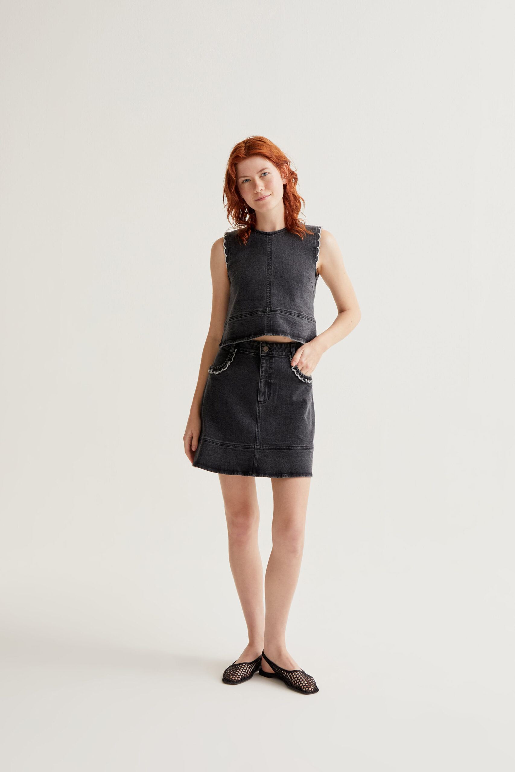 Μαύρη τζιν φούστα. Σταθερή ζώνη μεσαίου ύψους.