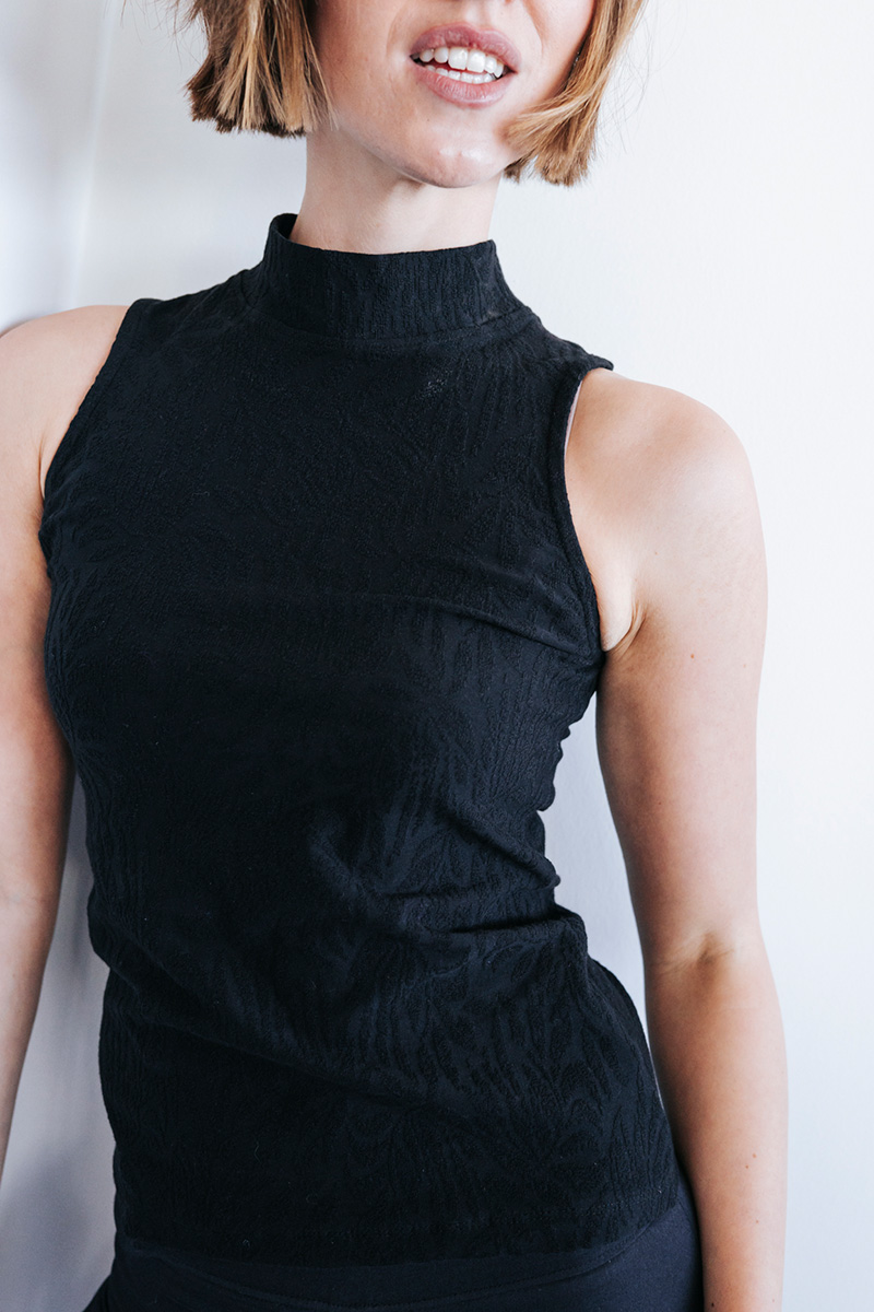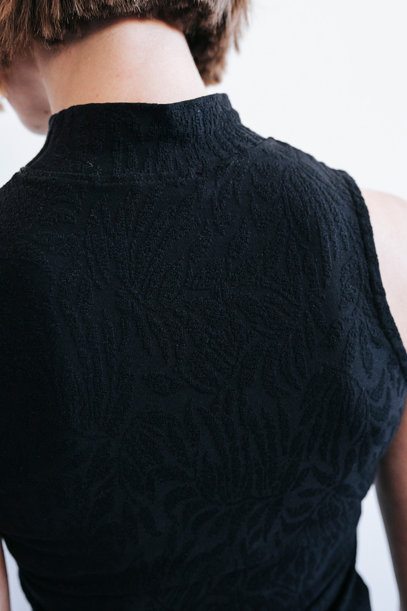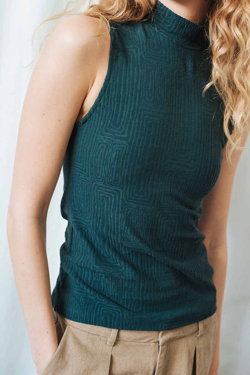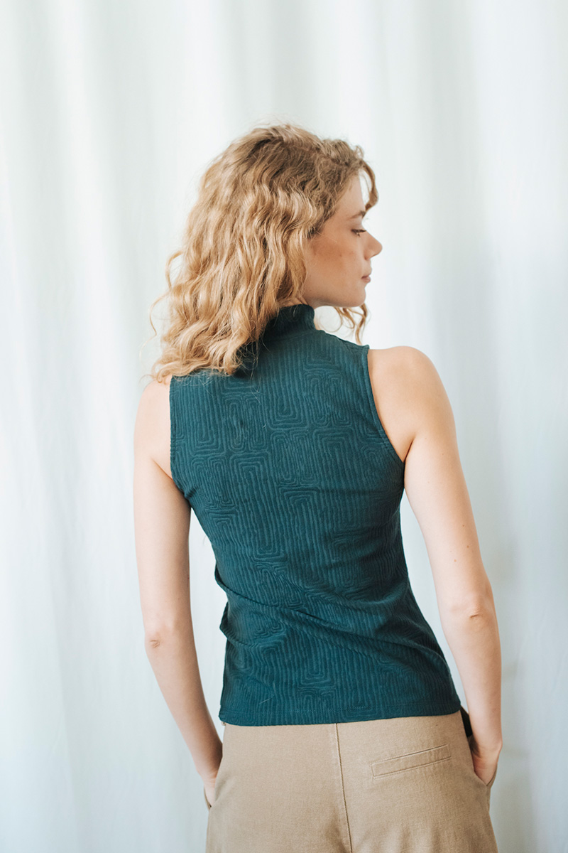 Μπλούζα αμάνικη ζακάρ με ψηλή λαιμόκοψη.