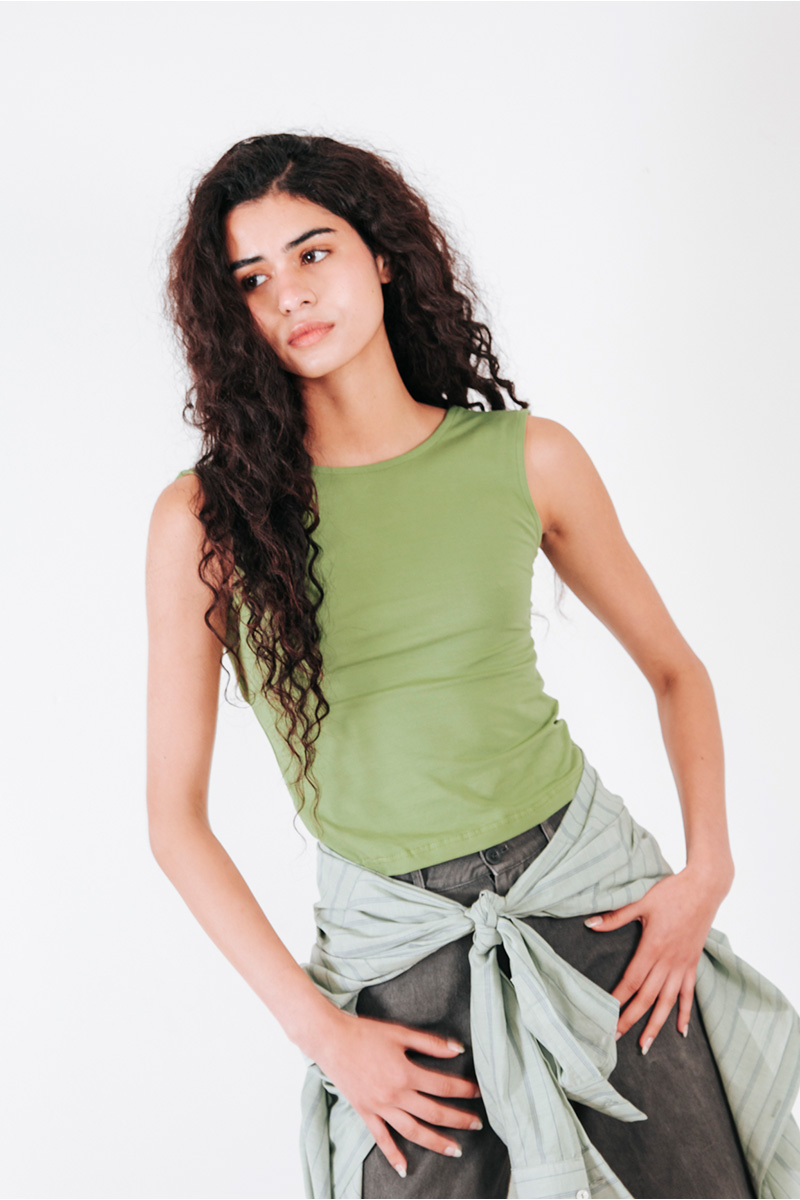Αμάνικη μπλούζα με ανοιχτή πλάτη και στρογγυλή λαιμόκοψη.