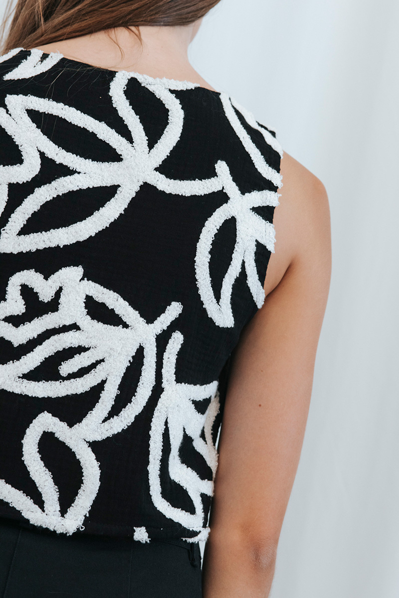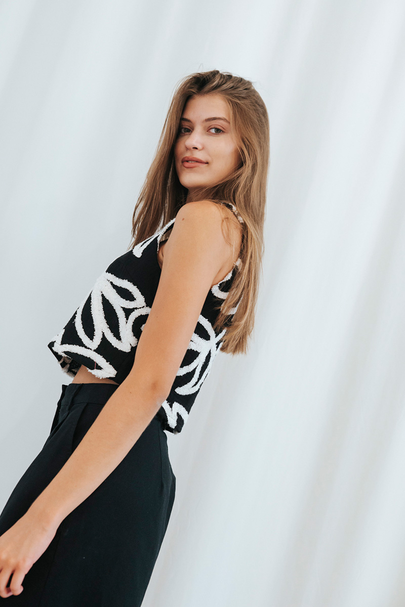 Κοντό μπλουζάκι κεντητό με τετράγωνη λαιμόκοψη.