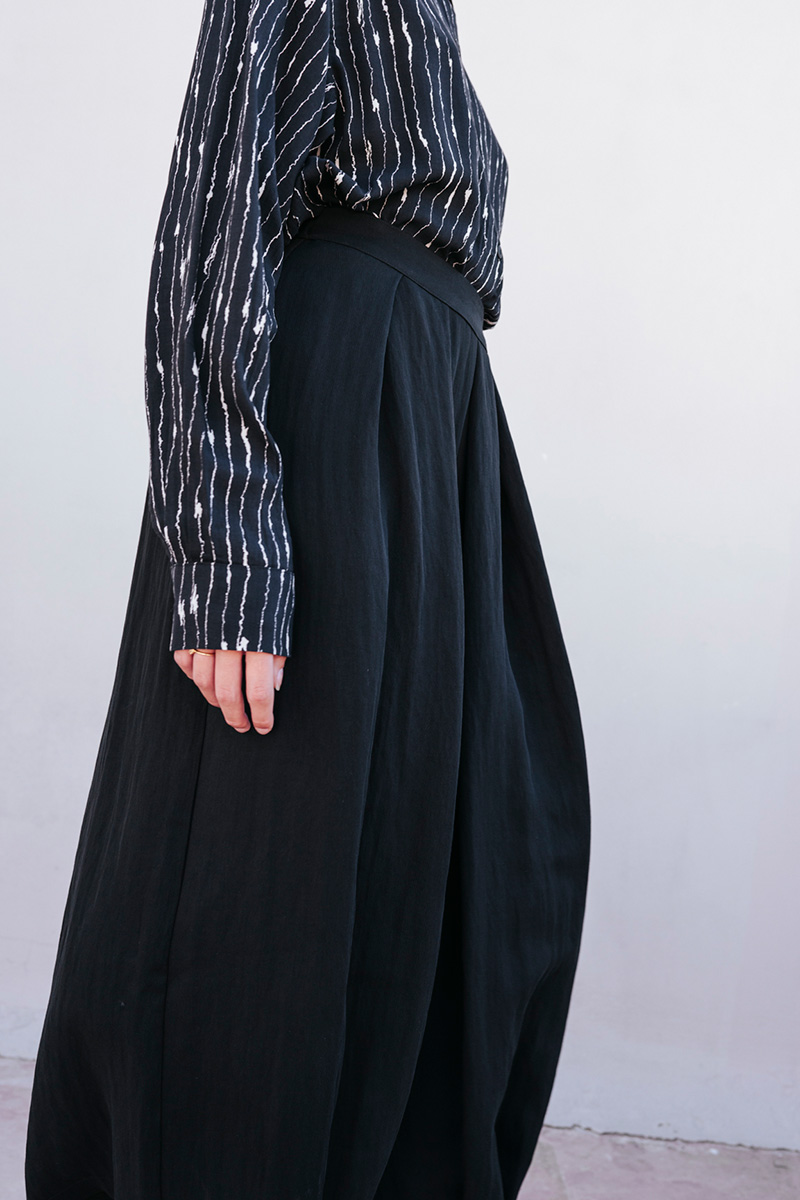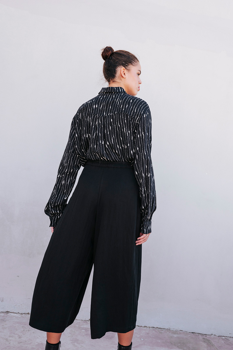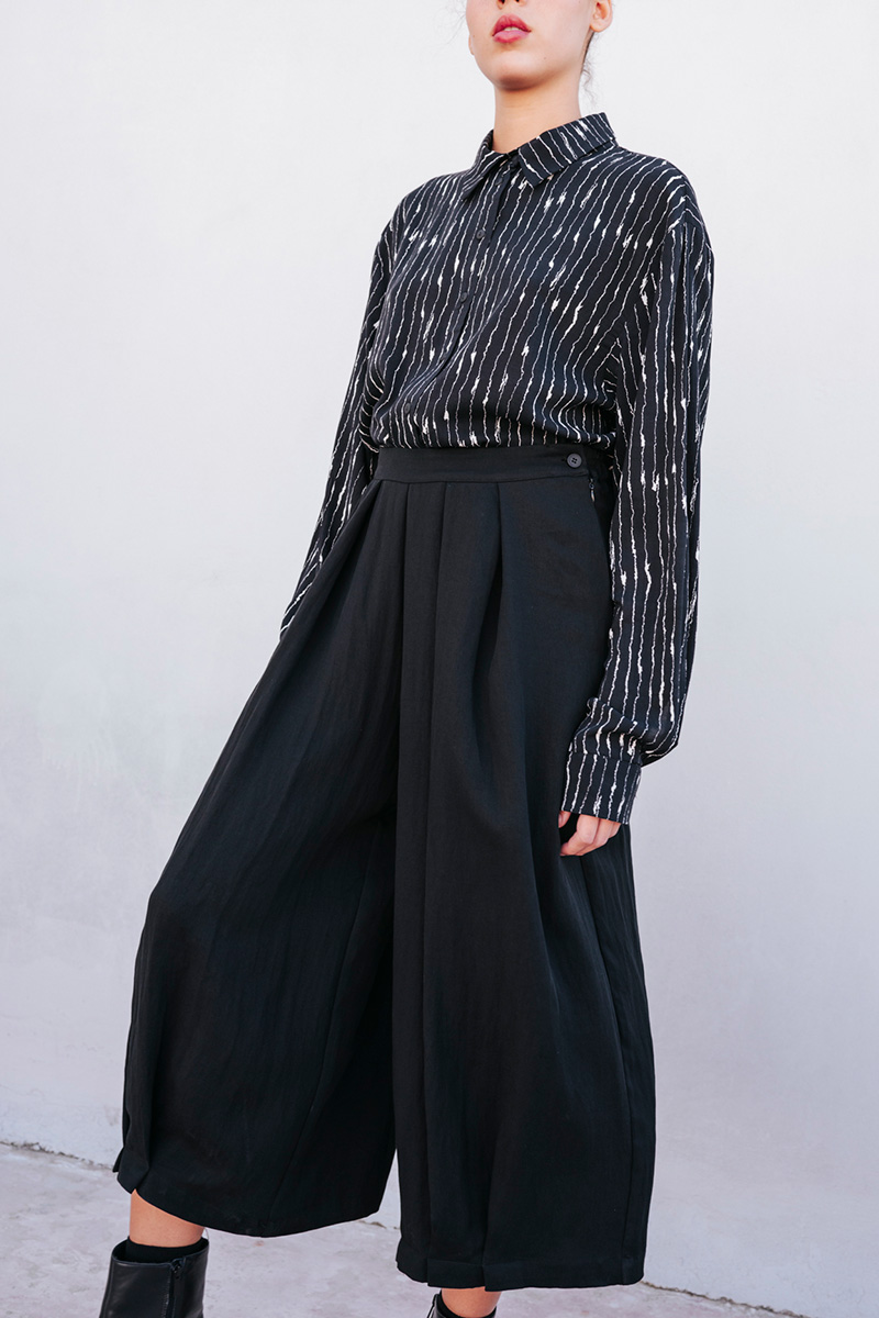 Παντελόνι με πιέτες μπροστά, τσέπες στο πλάι και κλείσιμο στο πλάι με κουμπί και φερμουάρ.