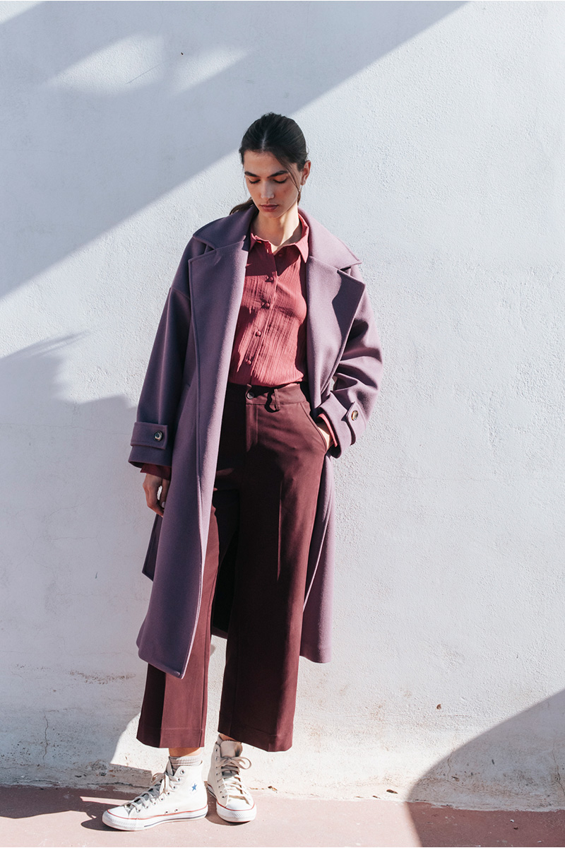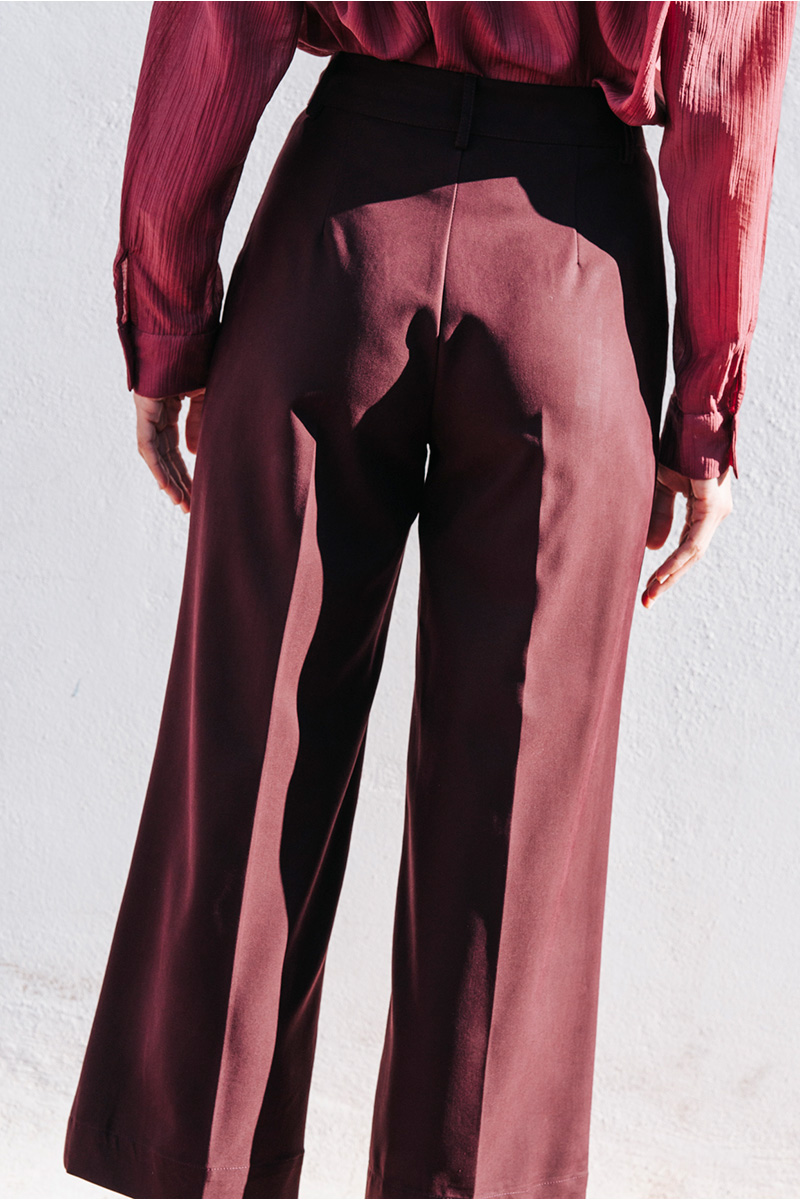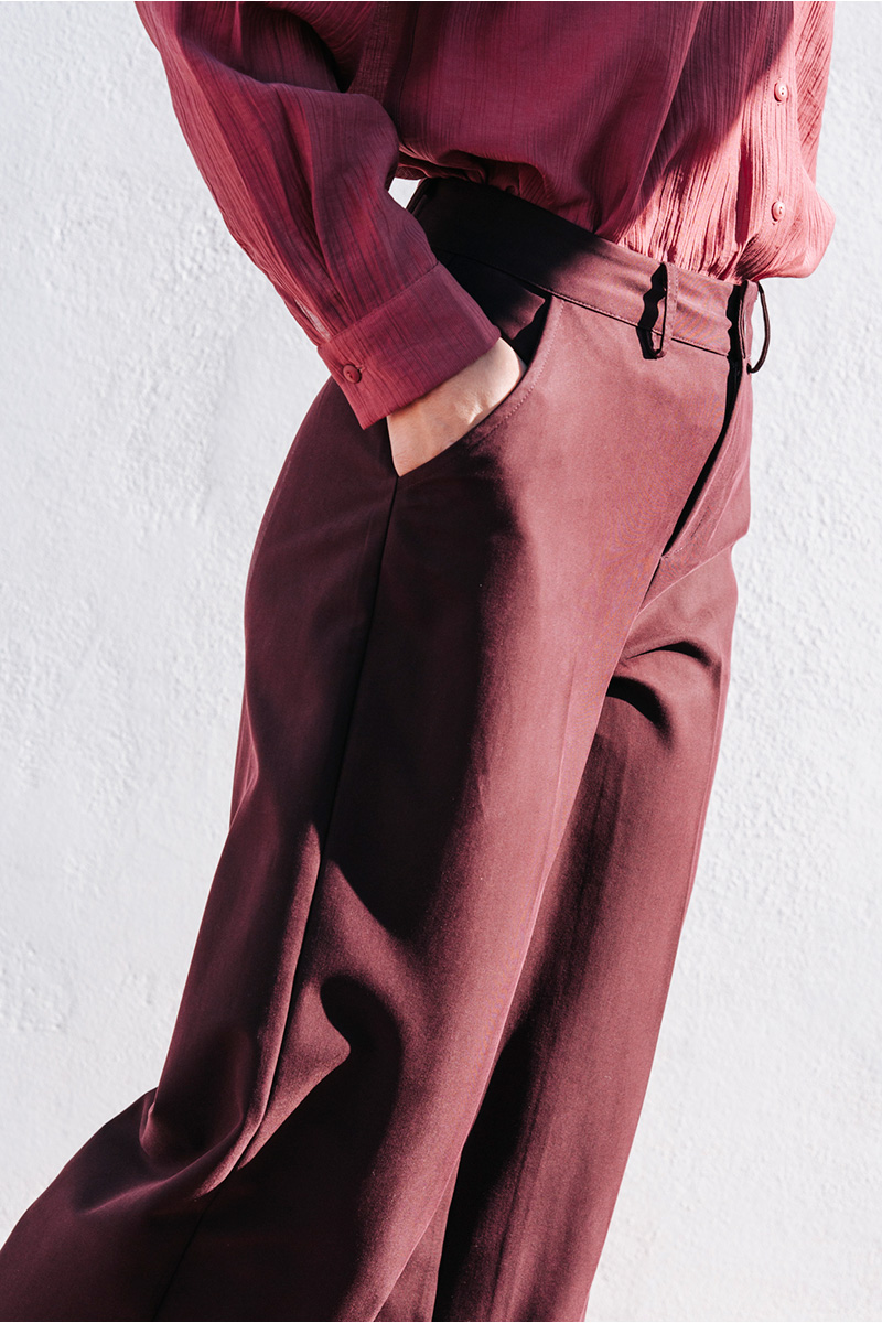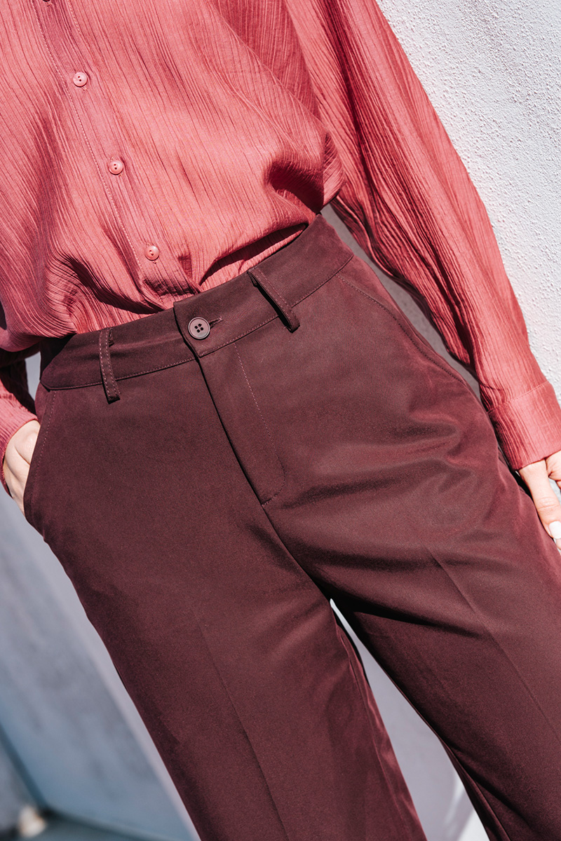 Παντελόνι σε ίσια γραμμή, με τσέπες στο πλάι και κλείσιμο μπροστά με φερμουάρ και κουμπί.