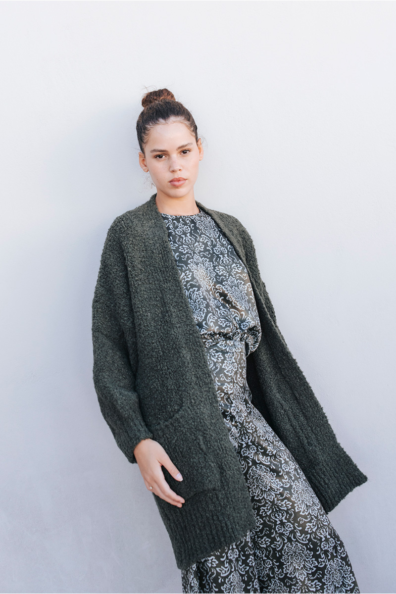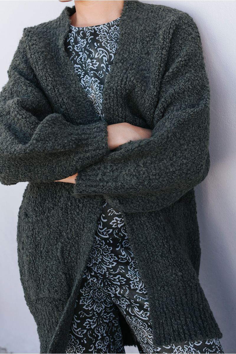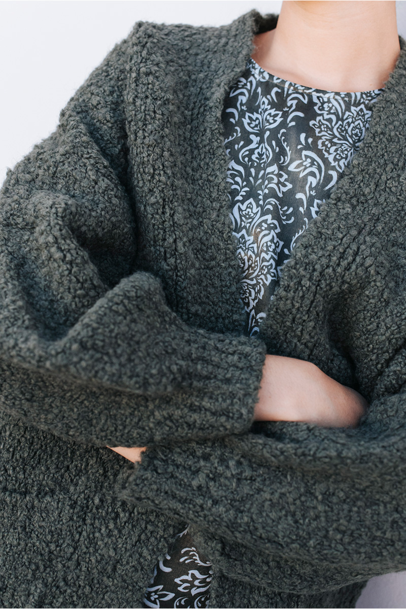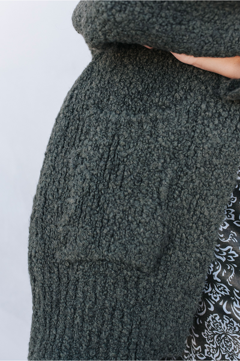 Μακριά πλεκτή ζακέτα μπουκλέ με τσέπες μπροστά.