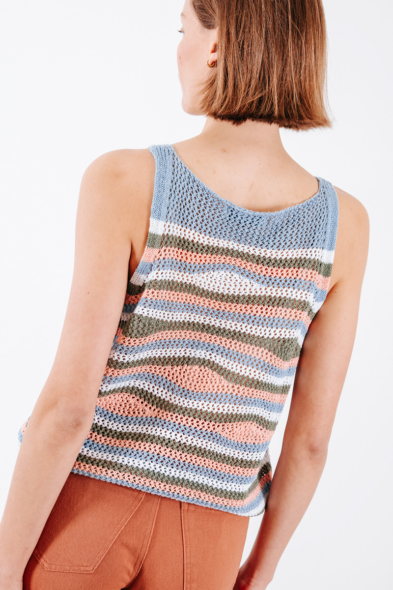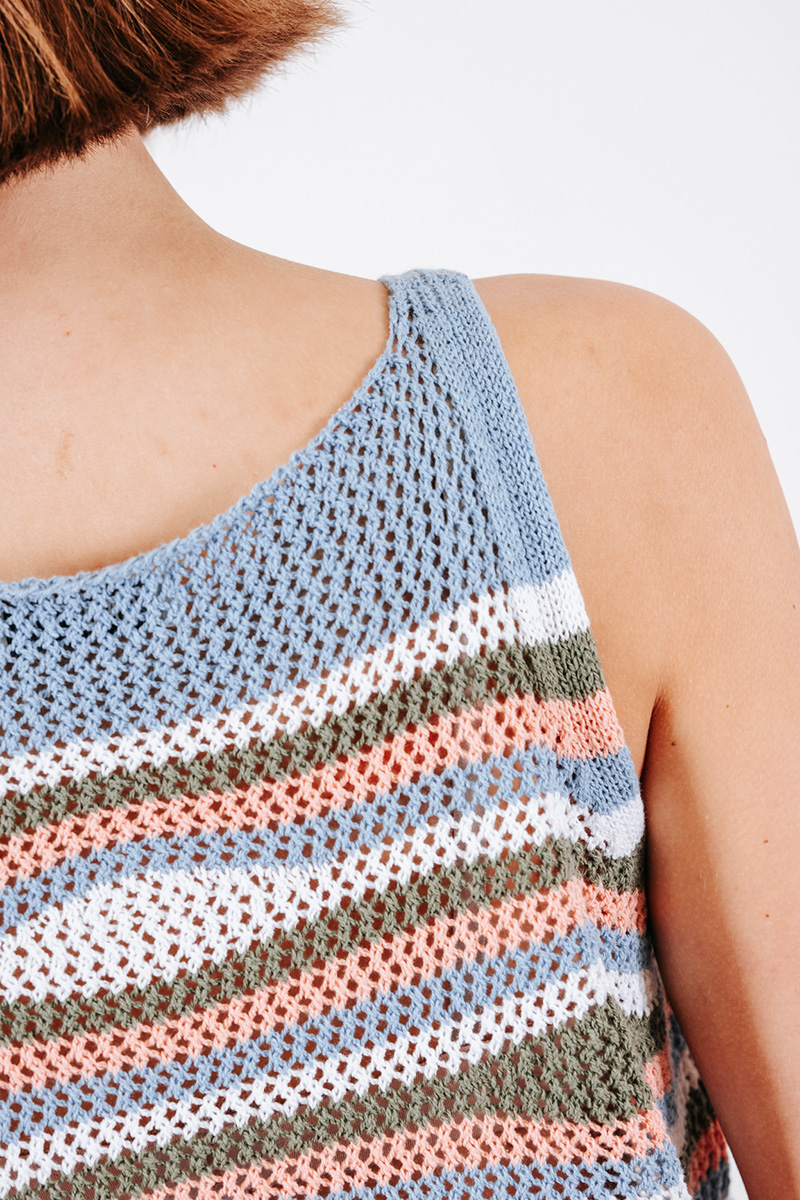 Πλεκτή αμάνικη μπλούζα ριγέ με στρογγυλή λαιμόκοψη.
