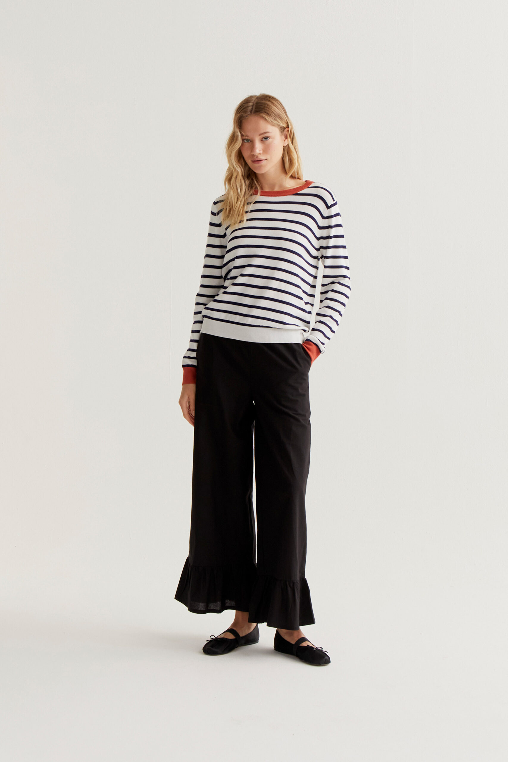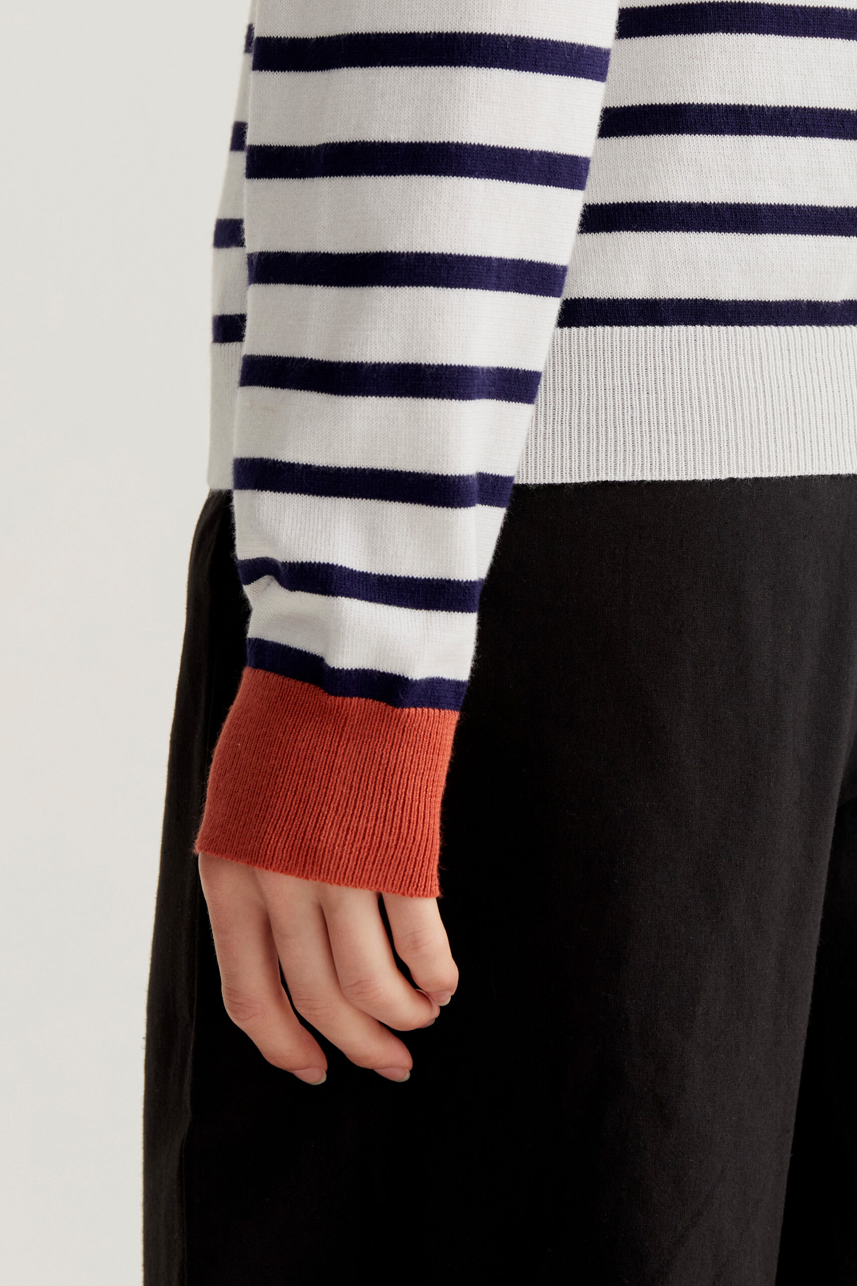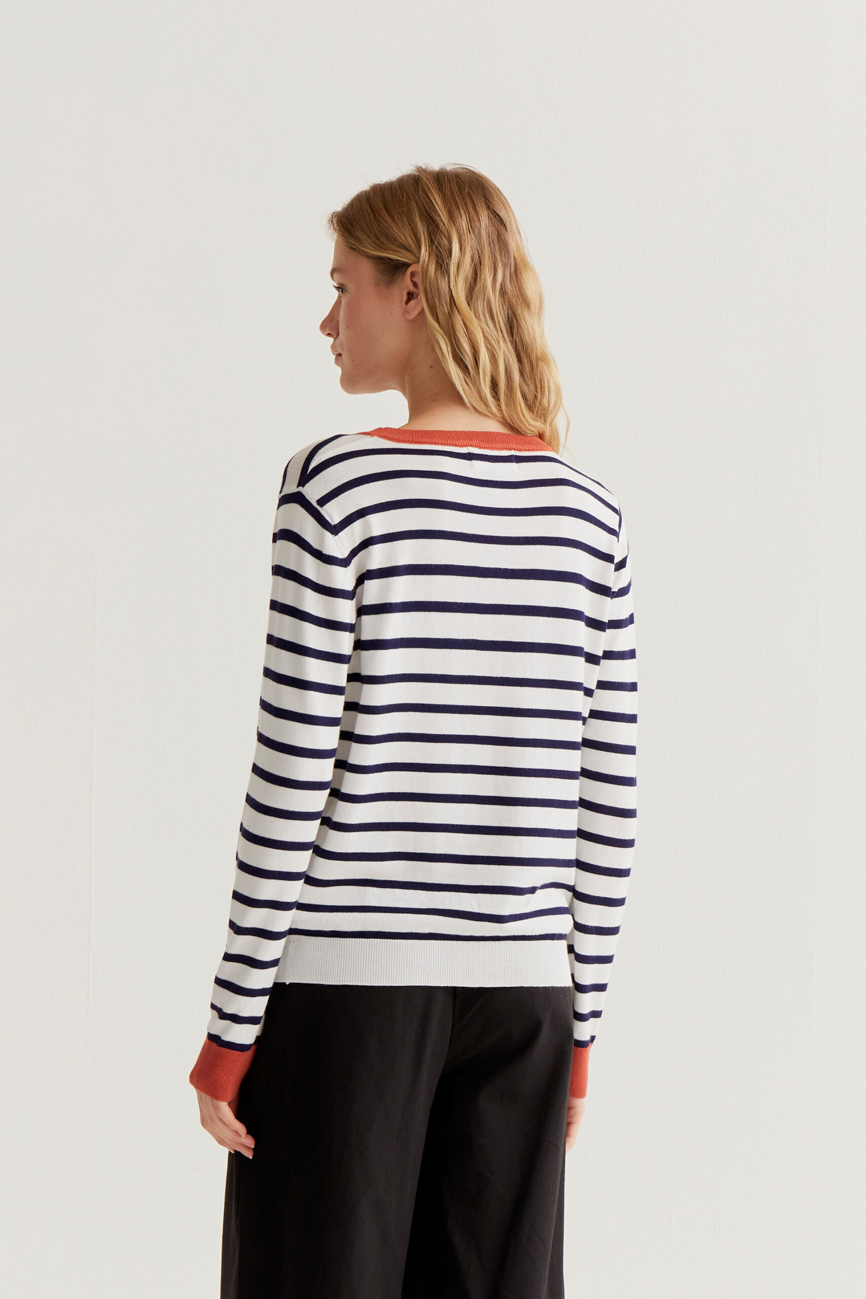 Πλεκτό πουλόβερ με ρίγες σε μπλέ και άσπρο χρώμα.
