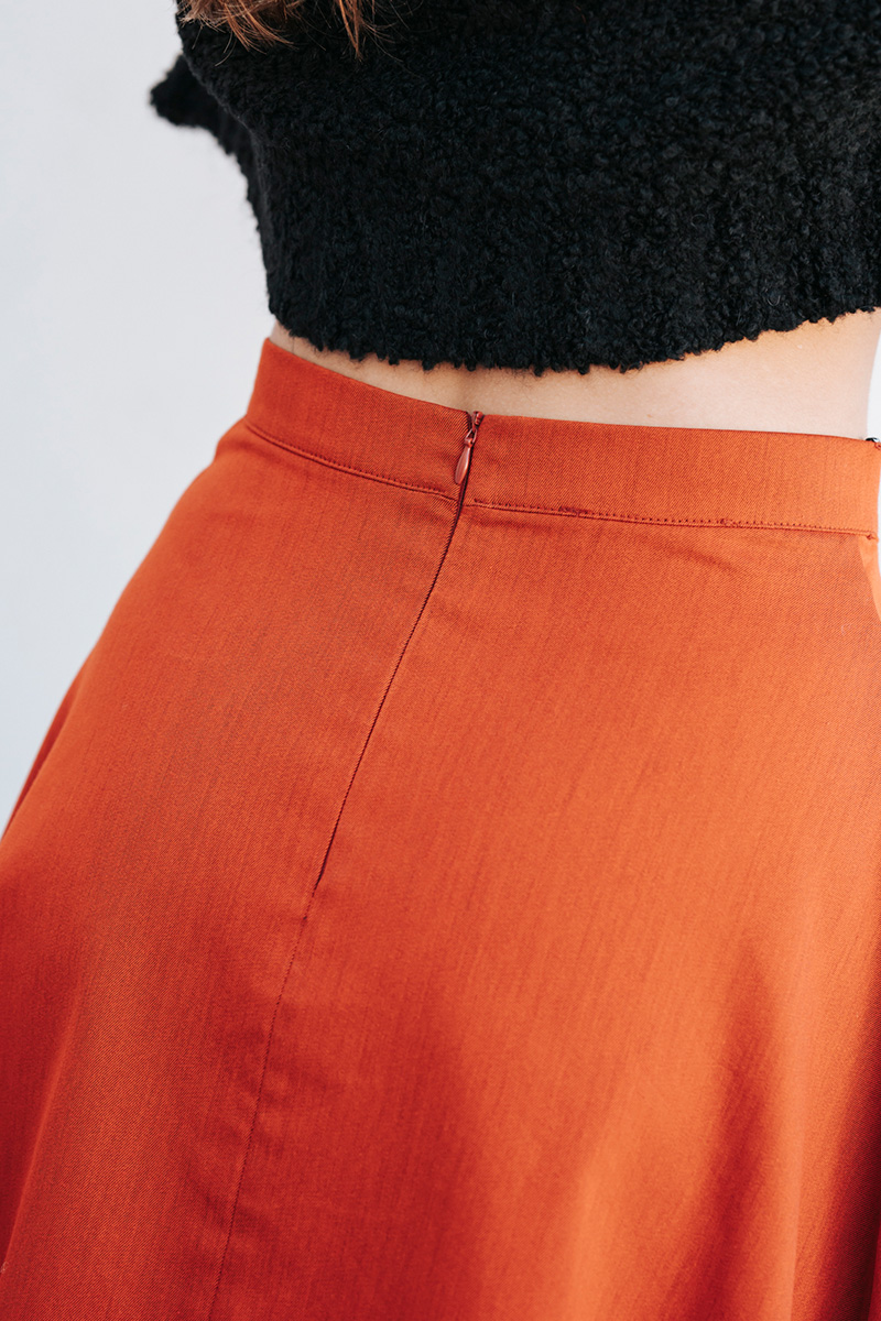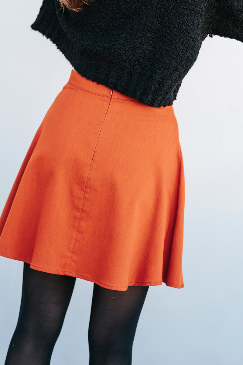 Μίνι φούστα, κλείσιμο με κρυφό φερμουάρ πίσω.