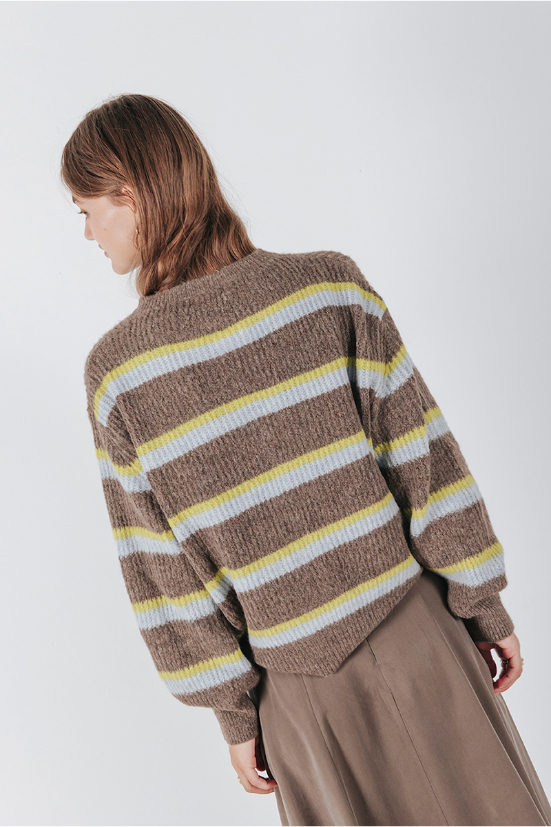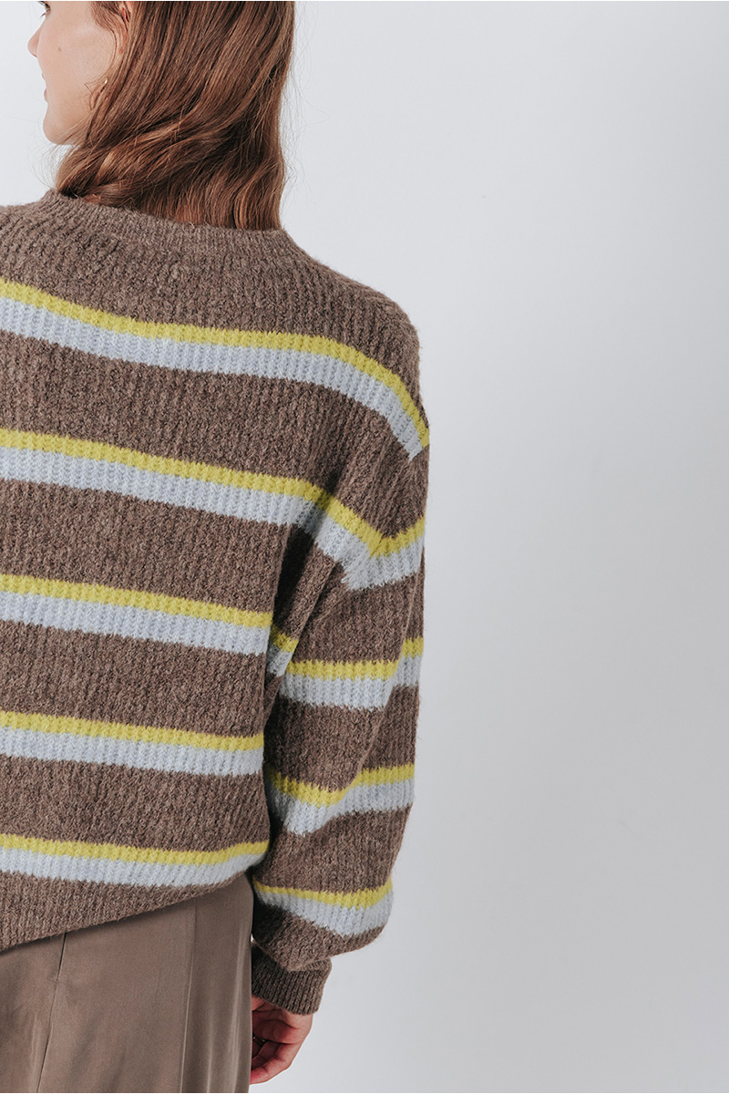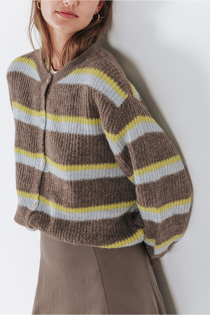 Ζακέτα πλεκτή με στρογγυλή λαιμόκοψη και κλείσιμο μπροστά με κουμπιά.
