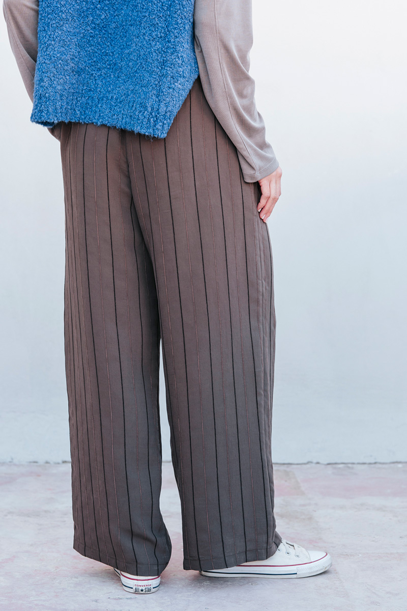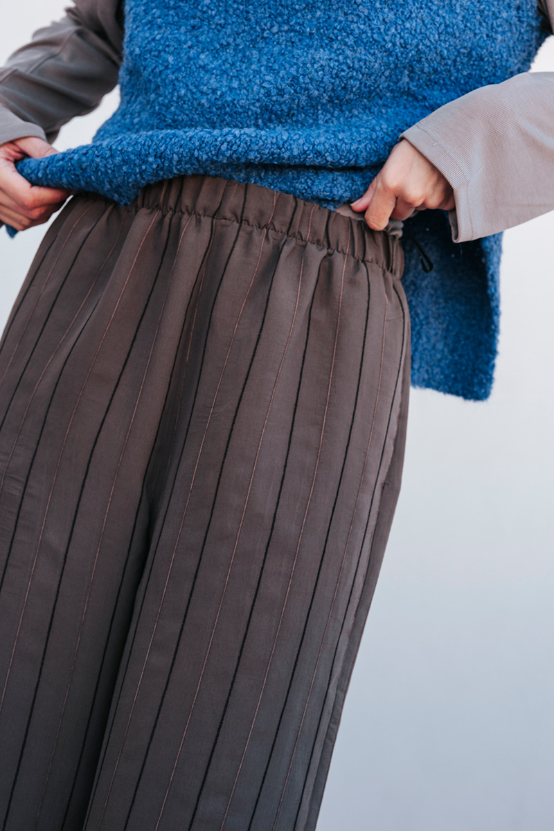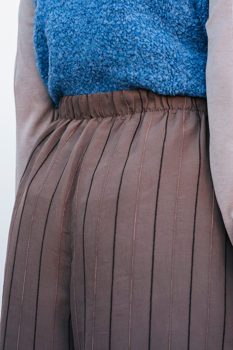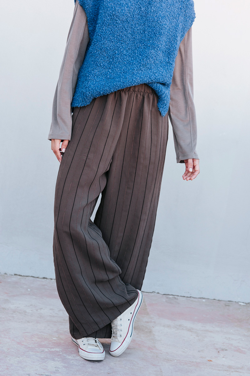 Ριγέ παντελόνα με λάστιχο στη μέση και τσέπες στο πλάι.