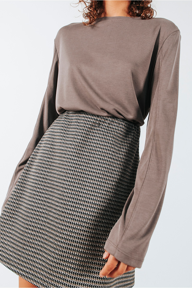 Μπλούζα ριπ με μακρύ μανίκι, στρογγυλή λαιμόκοψη και ραφές στα μανίκια.