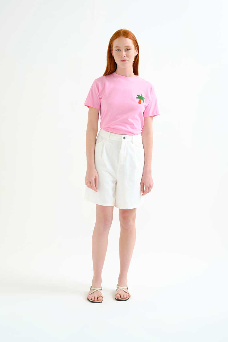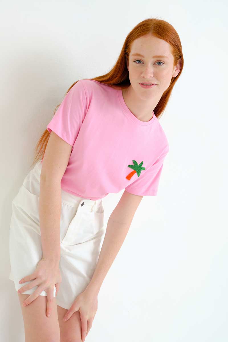 T-Shirt από βαμβακερό ύφασμα με χειροποίητο κεντητό τύπωμα Palm Tree (Φοίνικα).
