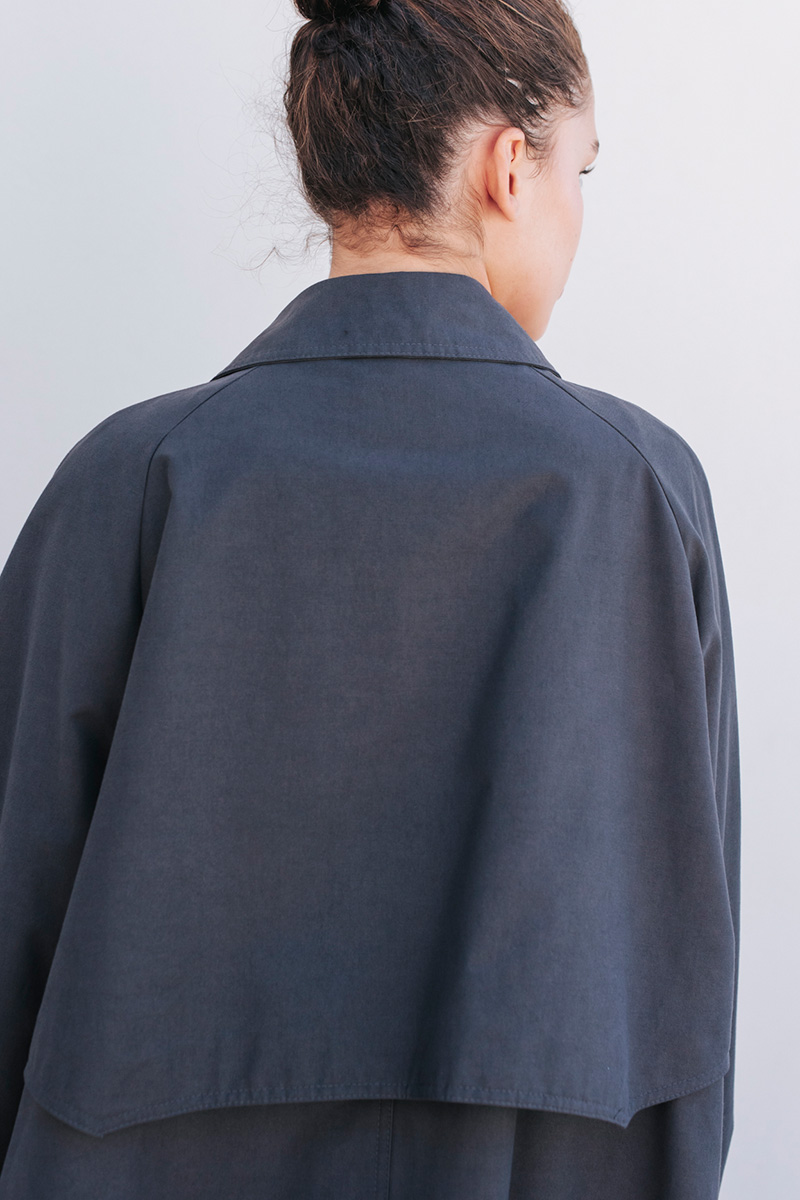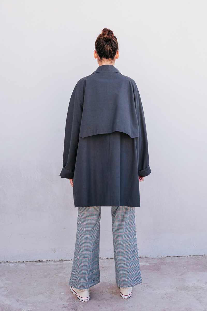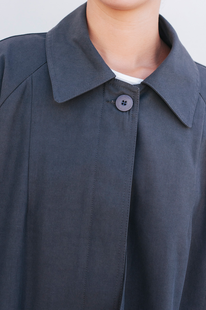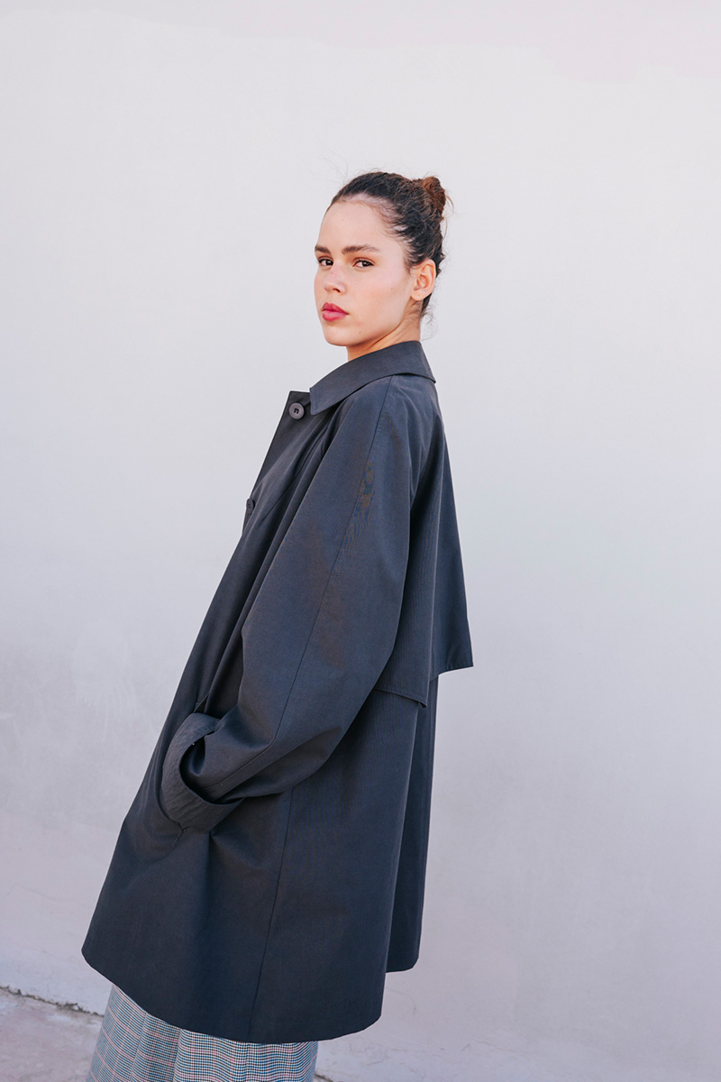 Καπαρτίνα φαρδιά με γιακά και μακρύ μανίκι. Τσέπες στο μπροστινό μέρος.