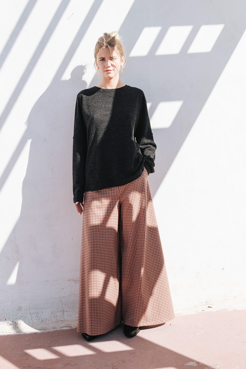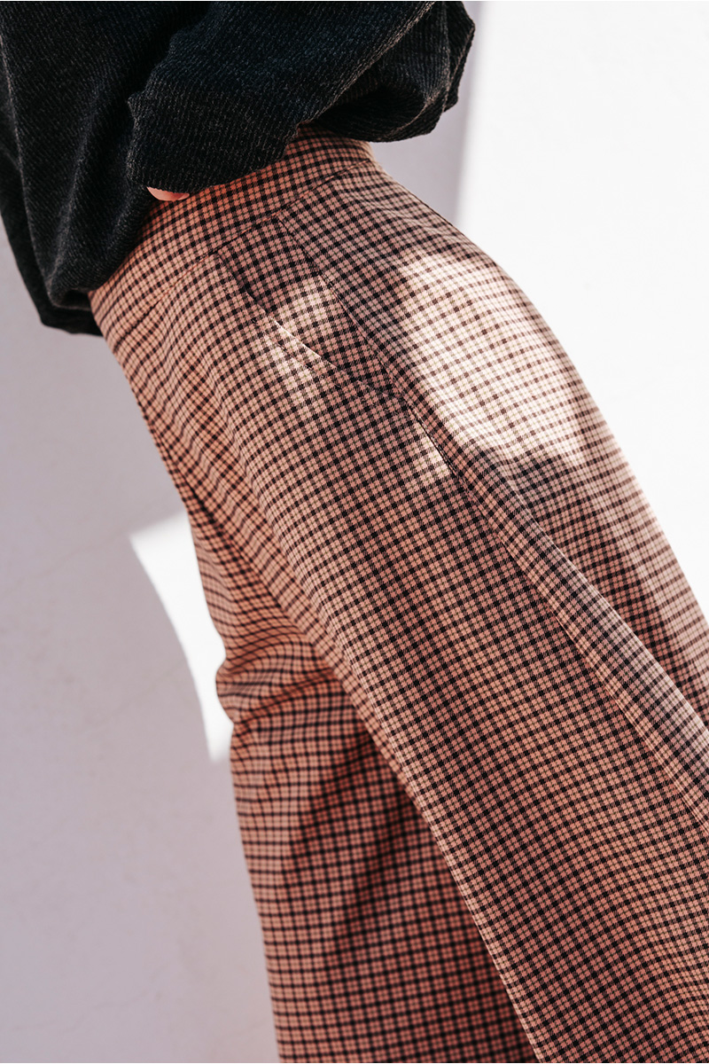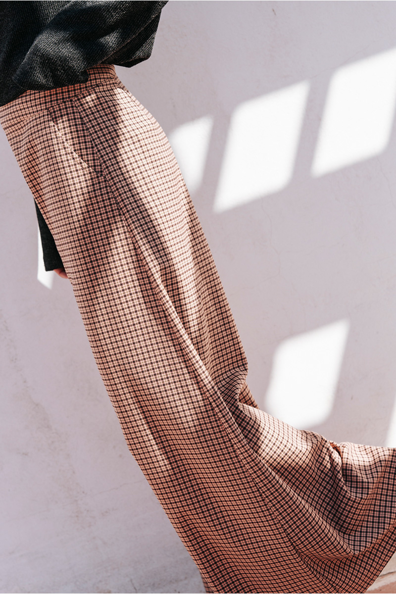 Φαρδιά παντελόνα καρό με τσέπες στο πλαί και κλείσιμο με κρυφό φερμουάρ στο πίσω μέρος.