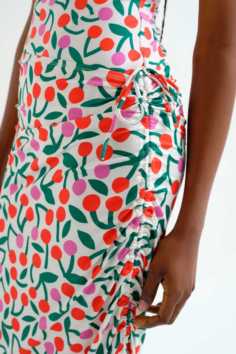 Σχέδιο με κορδόνι και λάστιχο στο πλάι για να διαμορφώσετε το σχέδιο της και το μήκος της.