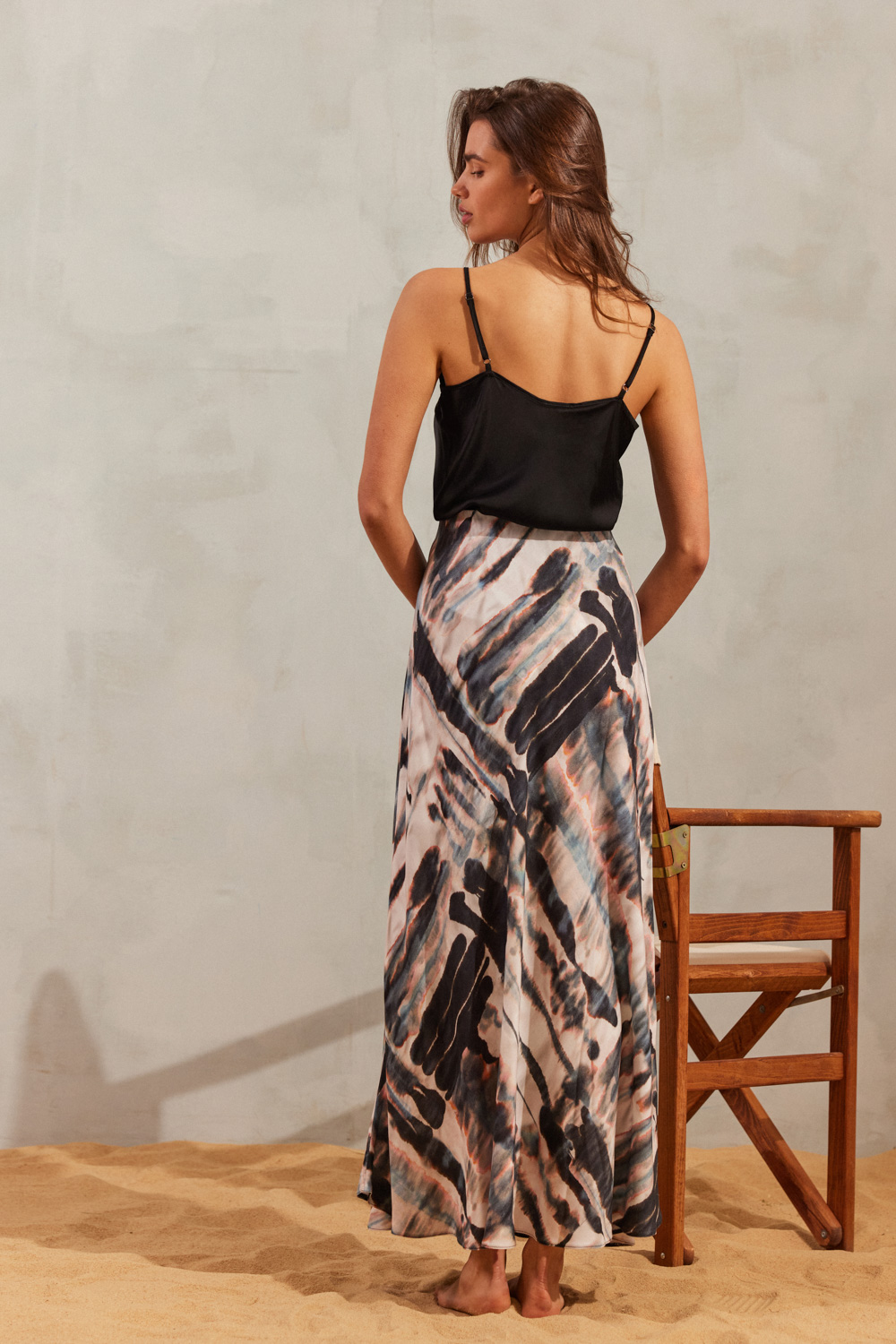 Μακριά φούστα σε ημίλοξη γραμμή με εσωτερικό λάστιχο για άνετη εφαρμογή.