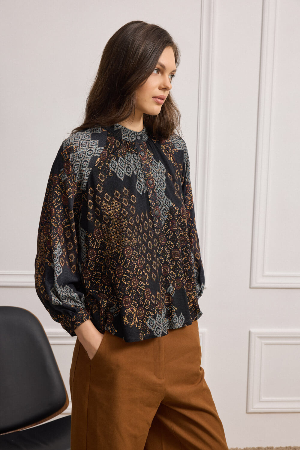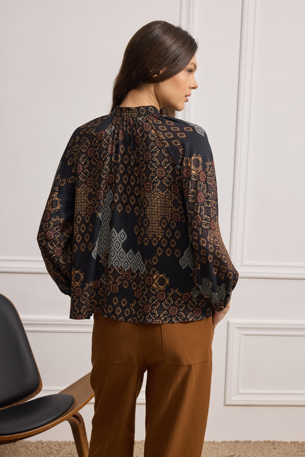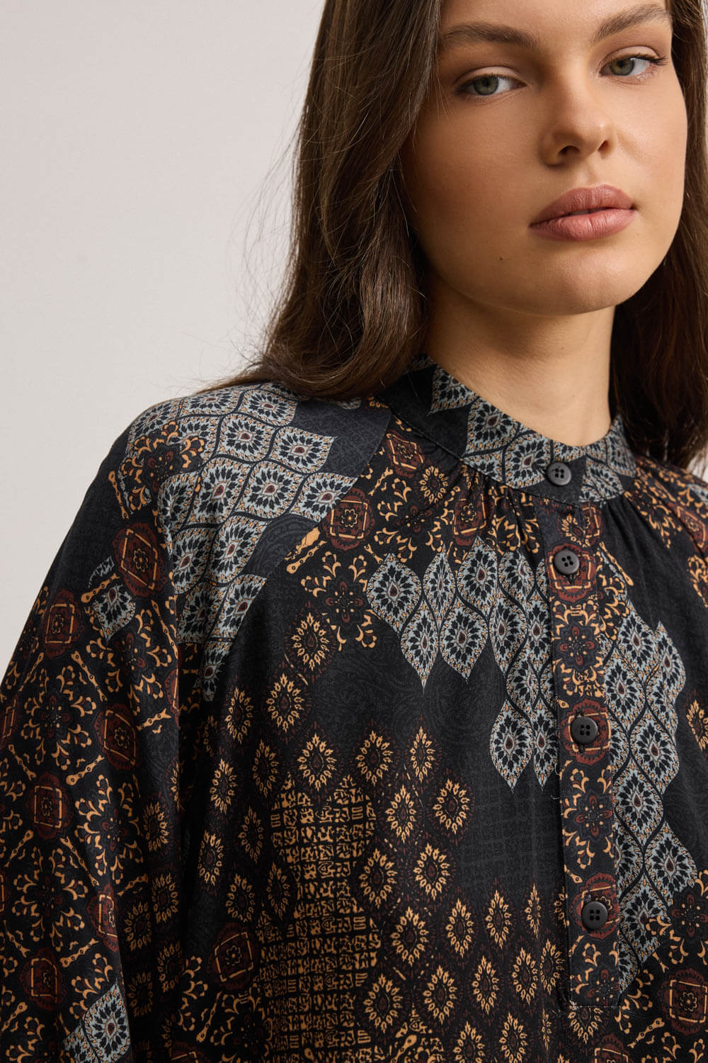 Τουνίκ 100% viscose με λουπέτο γιακά και γεωμετρικό print που αναδεικνύεται μέσα από την εναλλαγή των χρωμάτων,