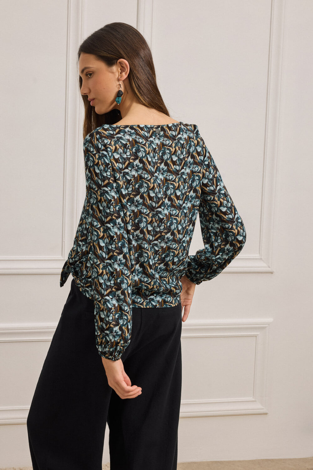 Το floral print προσθέτει χρώμα και θηλυκότητα, έχει στρογγυλή λαιμόκοψη και ένα διακριτικό άνοιγμα στο μπροστινό μέρος.