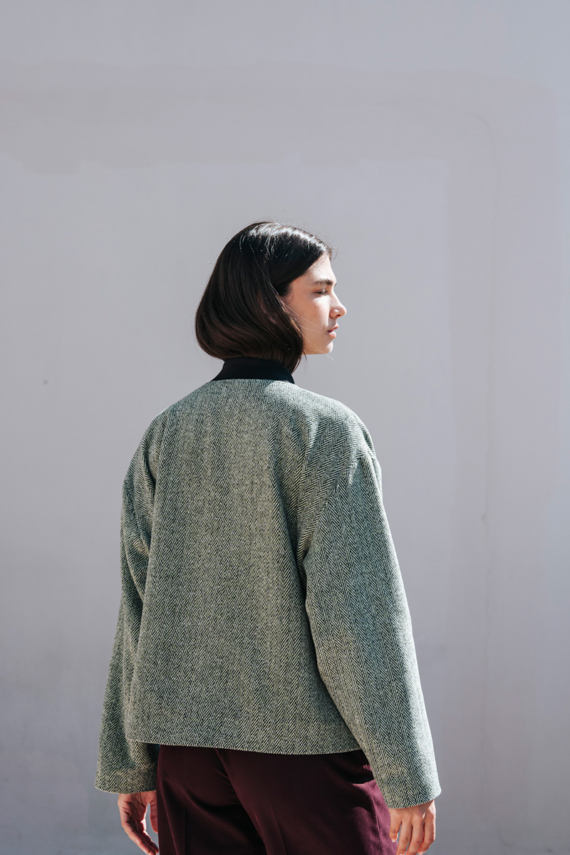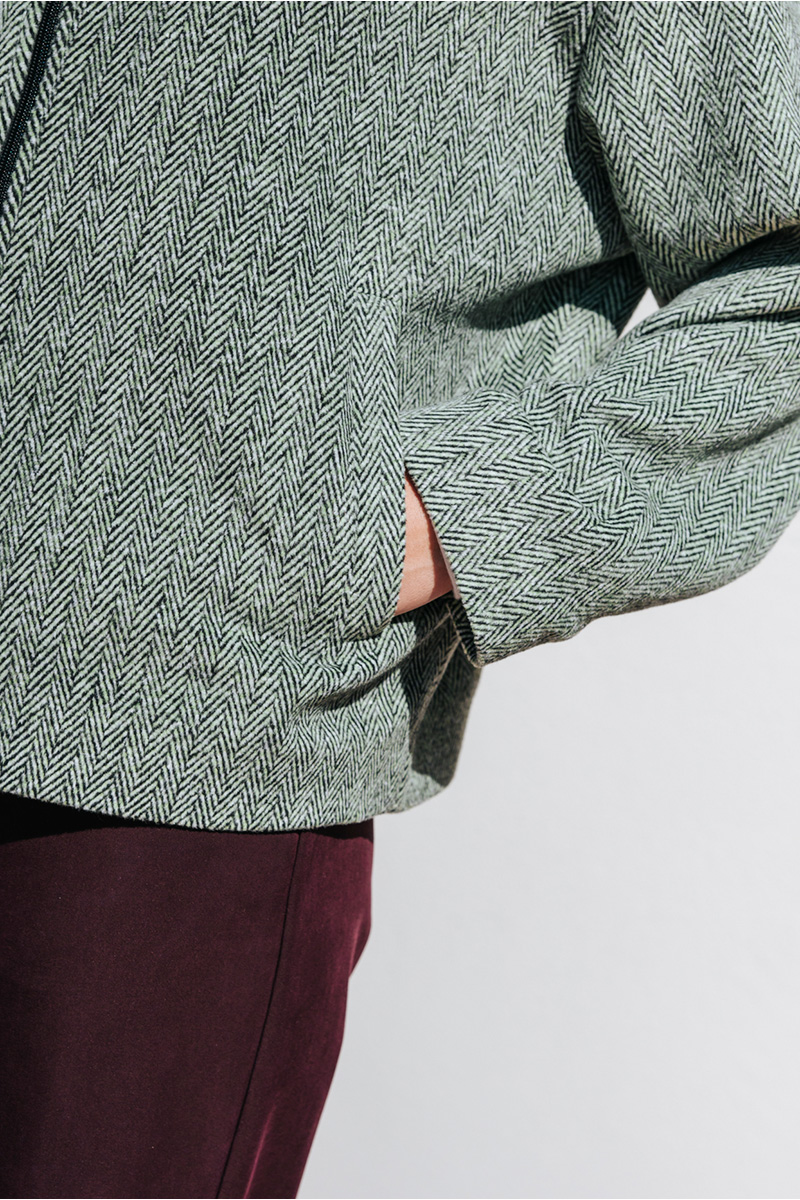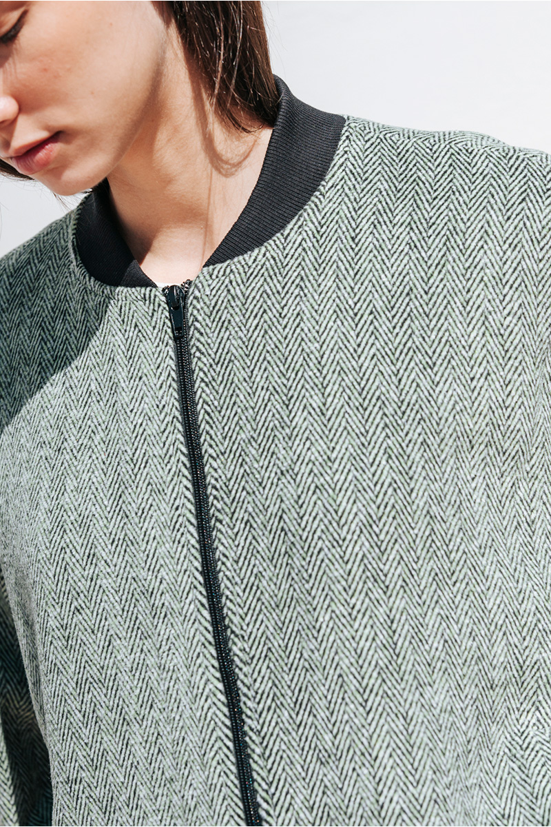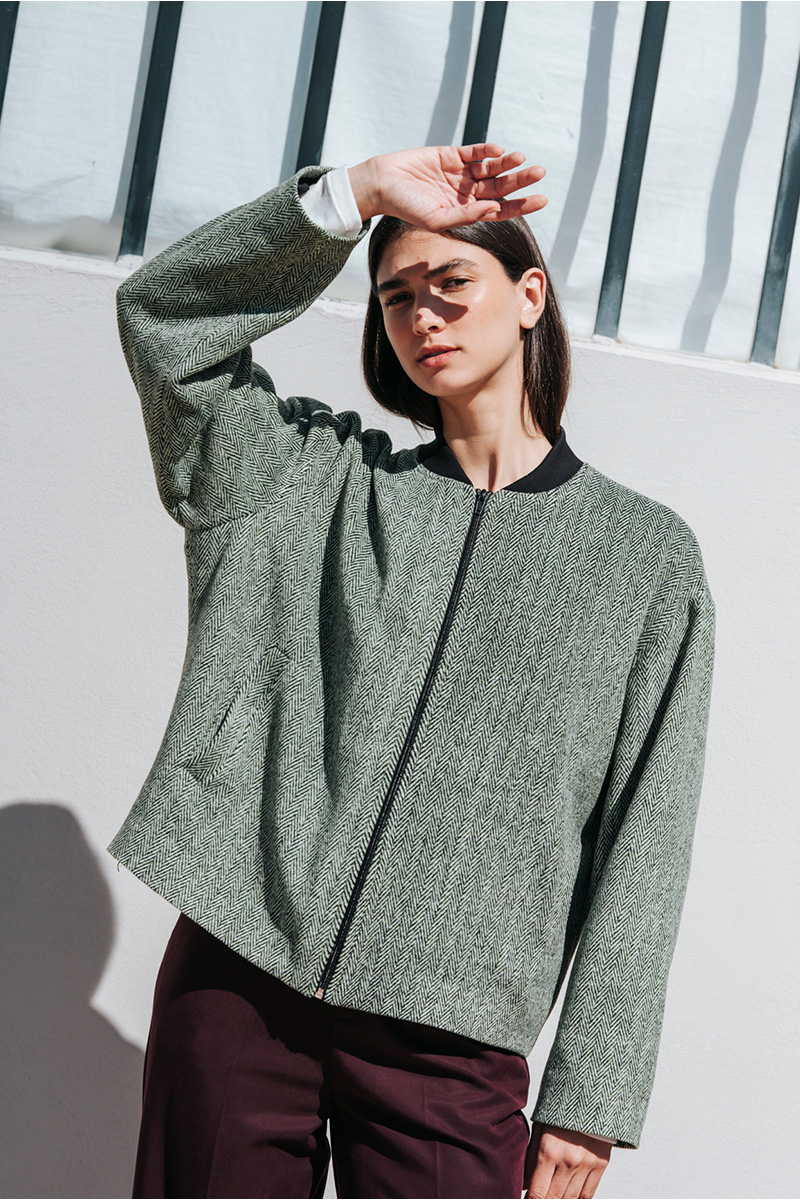 Τζάκετ με τσέπες στο πλάι, κλείσιμο μπροστά με φερμουάρ και τελειώματα σε ριπ ύφανση.