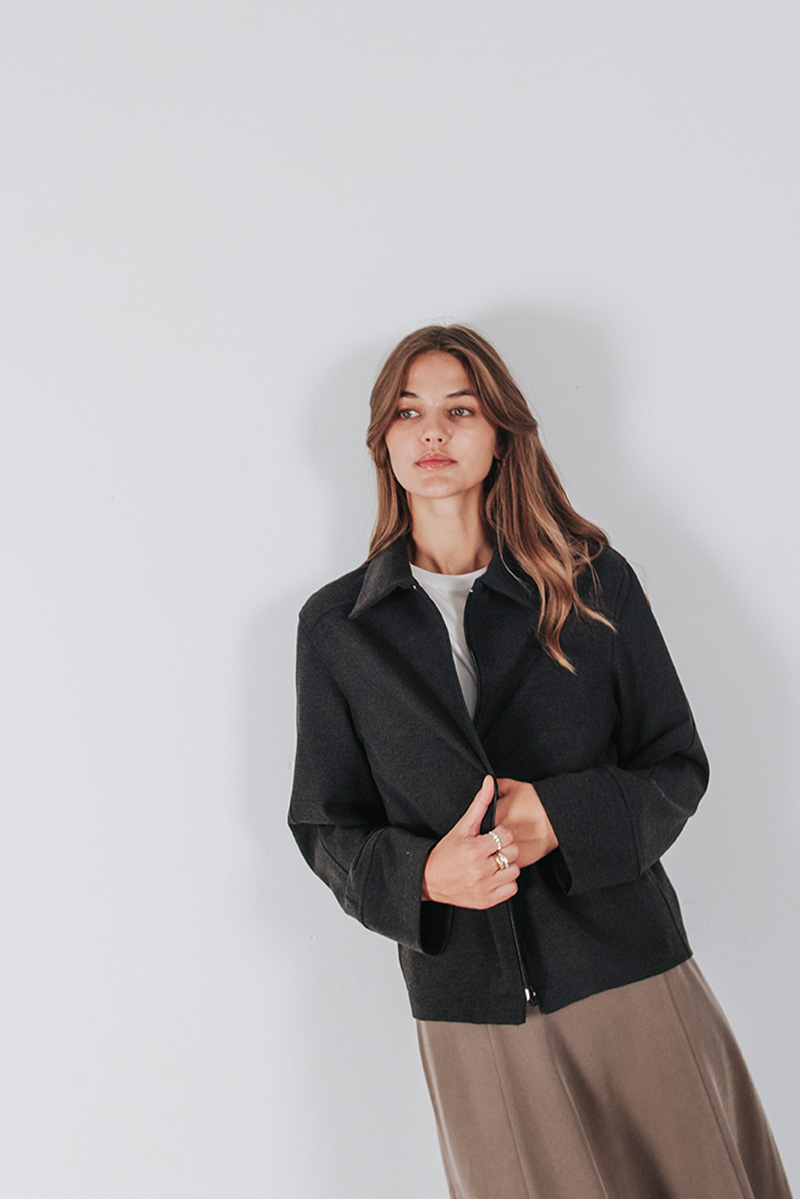 Τζάκετ με γιακά, κλείσιμο με φερμουάρ μπροστά και τσέπες στο πλάι.